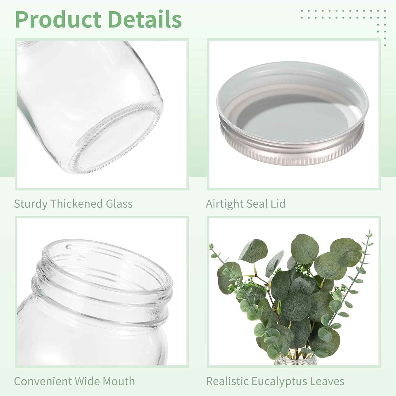 10 Set Mason Jar Centerpieces for Tables Centerpiece with Eucalyptus Breath, Clear Glass Mason Jar Vases with Rope, Wedding Table Centerpieces Bridal Shower Engagement Reception Rustic Farmhouse Decor