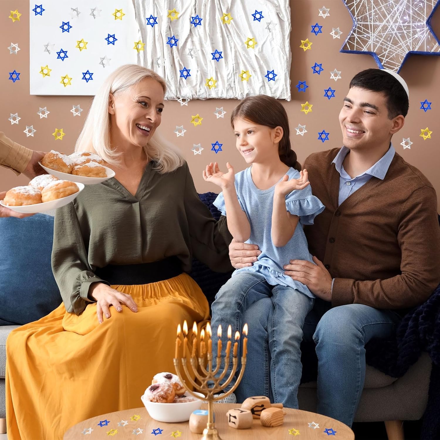 - Star of David Confetti: You will receive Hanukkah glitter confetti, with gold, blue and silver colors, which is enough to meet your decoration needs. You can also share these Hanukkah table confetti with friends and family, so as to double the fun and enjoy the party arrangement