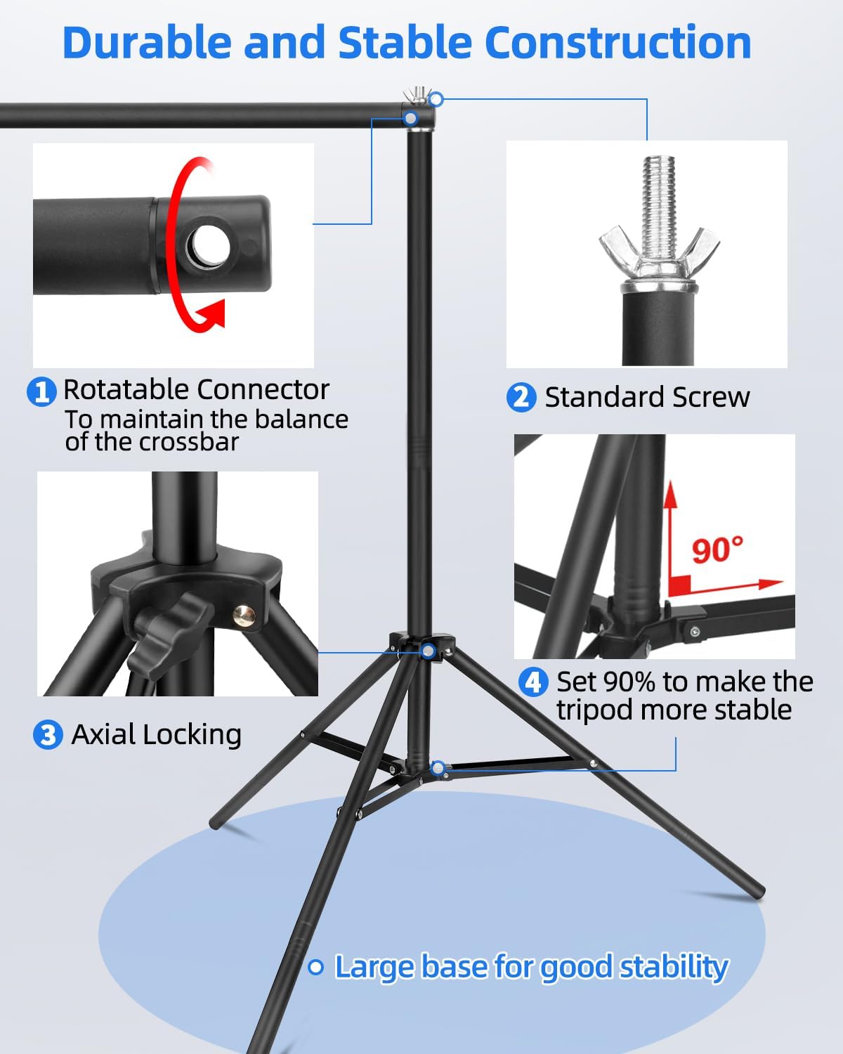 - Complete Accessory Kit: Includes 6 strong spring clips to firmly secure all types of backgrounds and fabrics. These accessories ensure a wrinkle-free, tight fit, adding to the professional viability of your setup