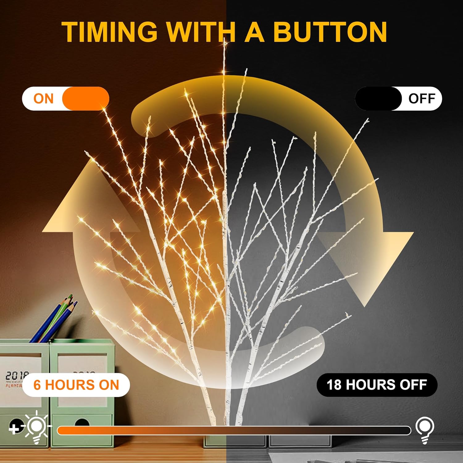- 🎨 Shape Your Holiday Style- Flexible lighted branches allow DIY styling. Decorate with ornaments, garlands, or simply enjoy the natural birch branches glow as a holiday highlight.