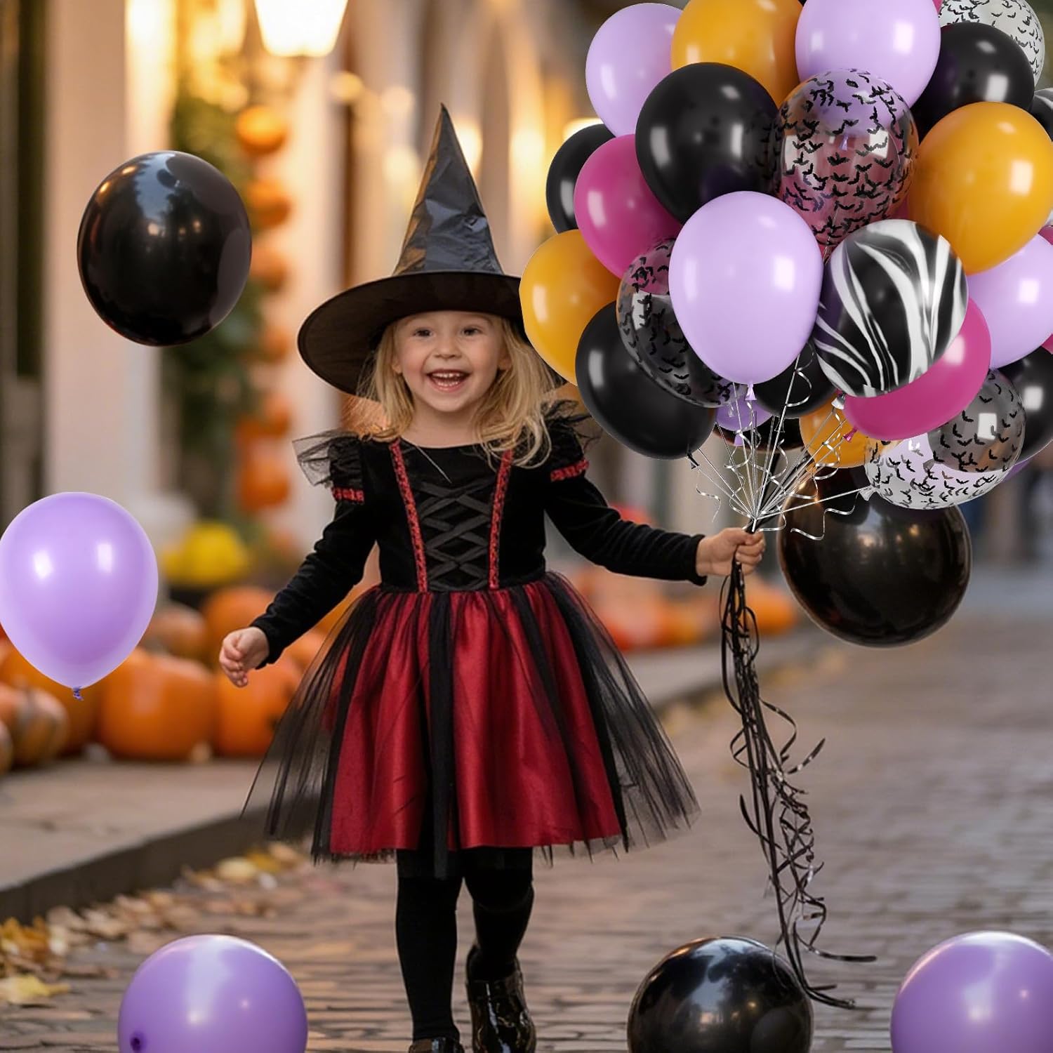 - Easy Assembly & Versatile Use: The black and purple halloween balloons inflate quickly with air or helium for flexible decorating options. Arrange them into garlands, balloon walls, or table accents, and mix the bat confetti balloons among the solids for a balanced look. Perfect for large venue backdrops, cozy indoor gatherings, or outdoor Halloween displays.