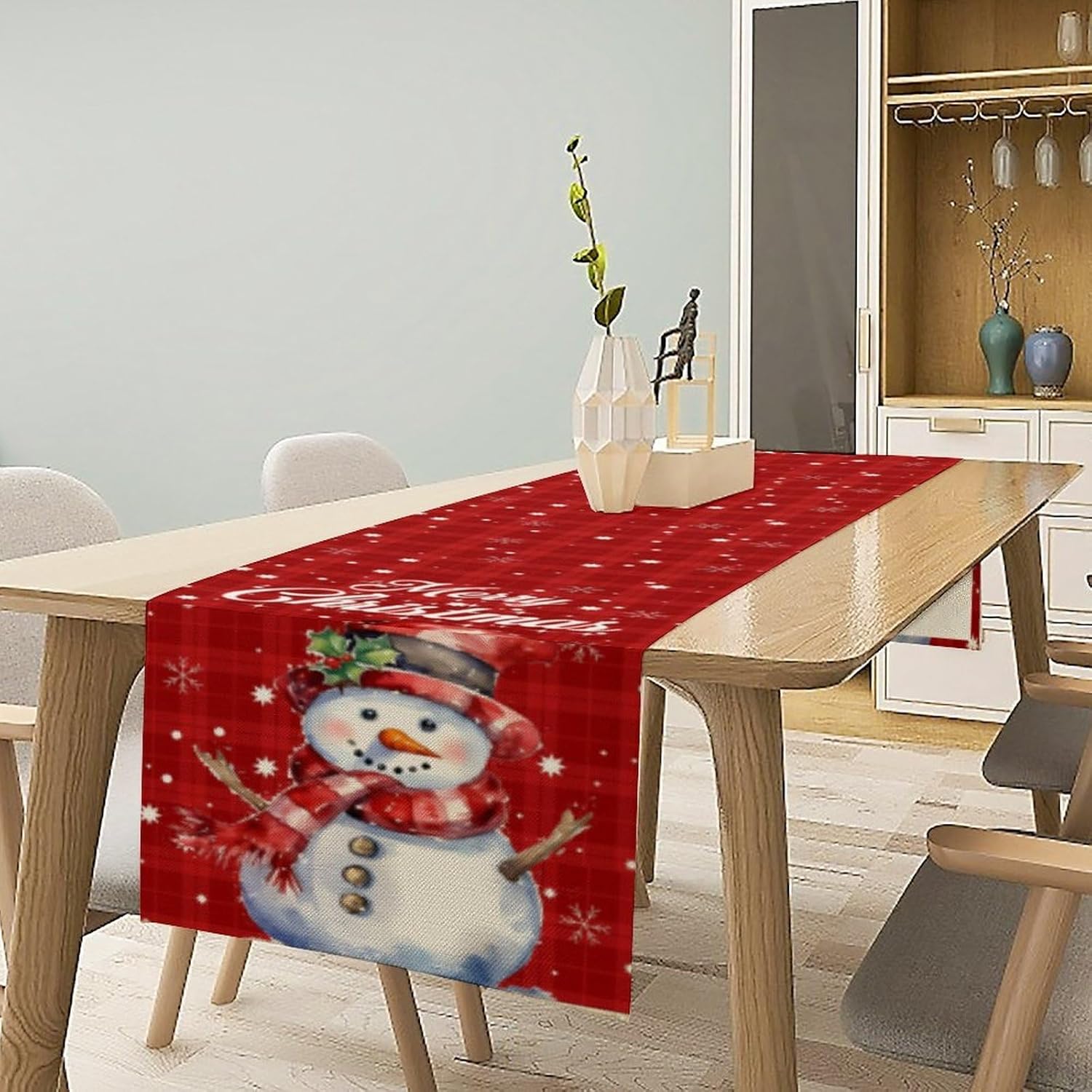 Christmas Table Runner,Christmas Snowman Snowflakes Winter Seasonal Table Cloth Kitchen Dining Table Decoration for Home Party Decor 13x90 Inch