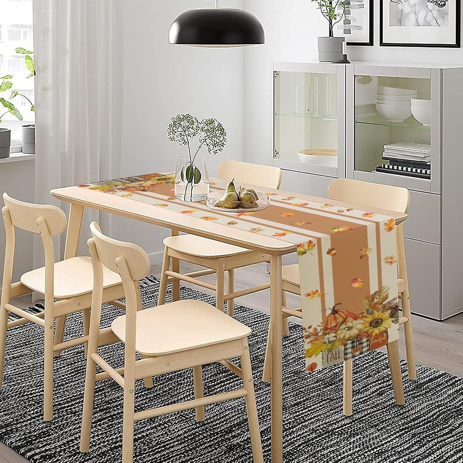 Autumn Table Runner,Thanksgiving Fall Pumpkin Leaves Floral Table Cloth for Kitchen Dining Table Decoration Home Party Decor 13x70 Inch