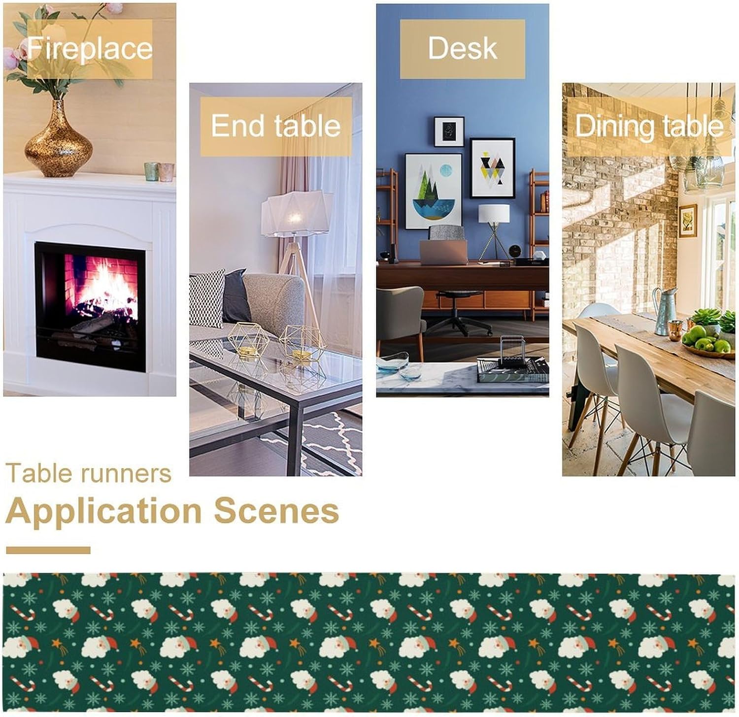 Christmas Table Runner,Seasonal Winter Xmas Holiday Green Table Cloth Kitchen Dining Table Decoration for Home Party Decor 13x70 Inch