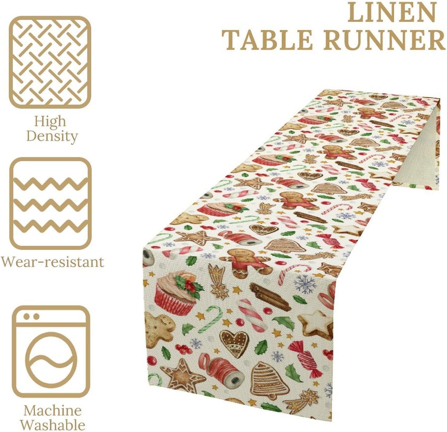 Christmas Table Runner, Christmas Gingerbread New Year Xmas Table Cloth Kitchen Dining Table Decoration for Home Party Decor 13x36 Inch