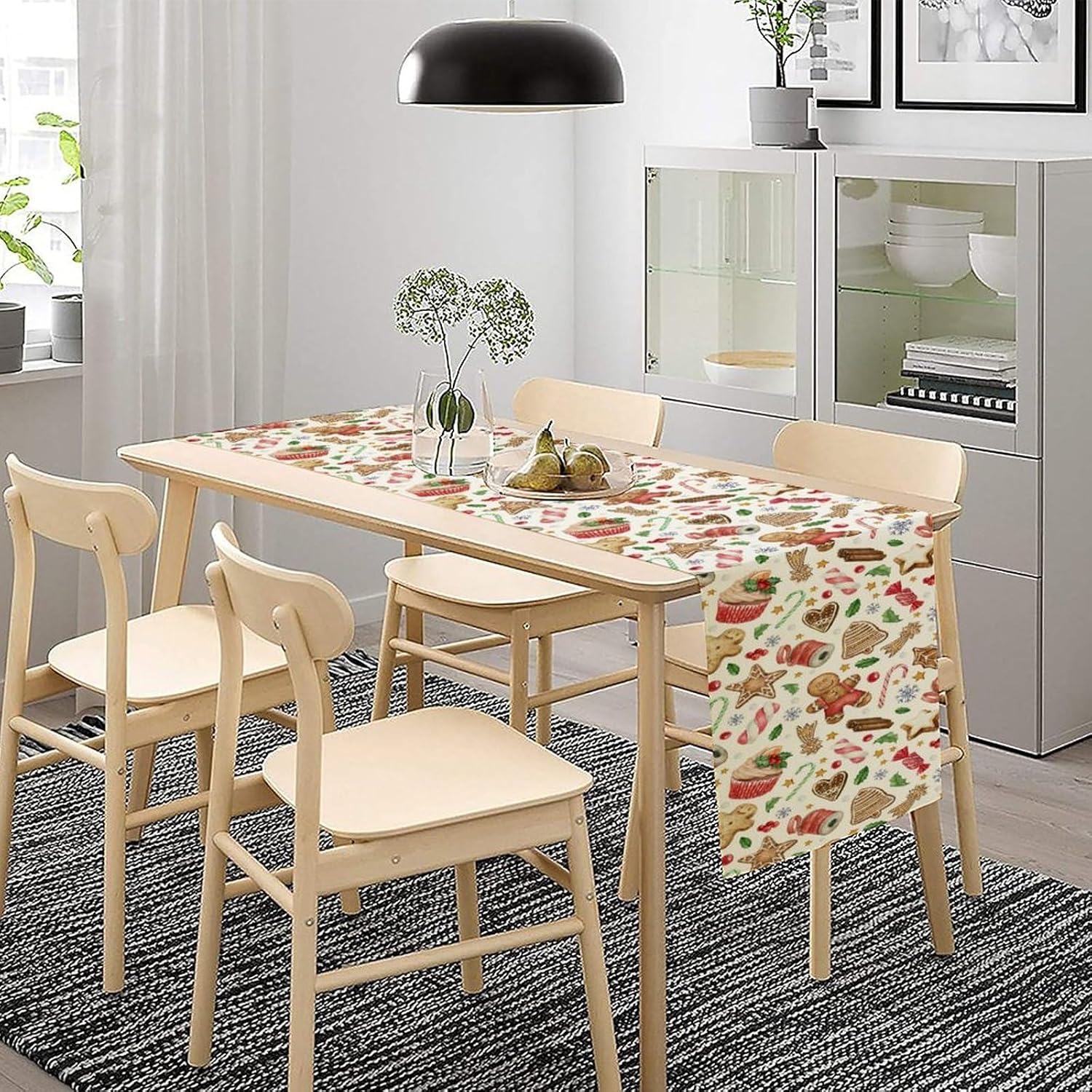 Christmas Table Runner, Christmas Gingerbread New Year Xmas Table Cloth Kitchen Dining Table Decoration for Home Party Decor 13x120 Inch