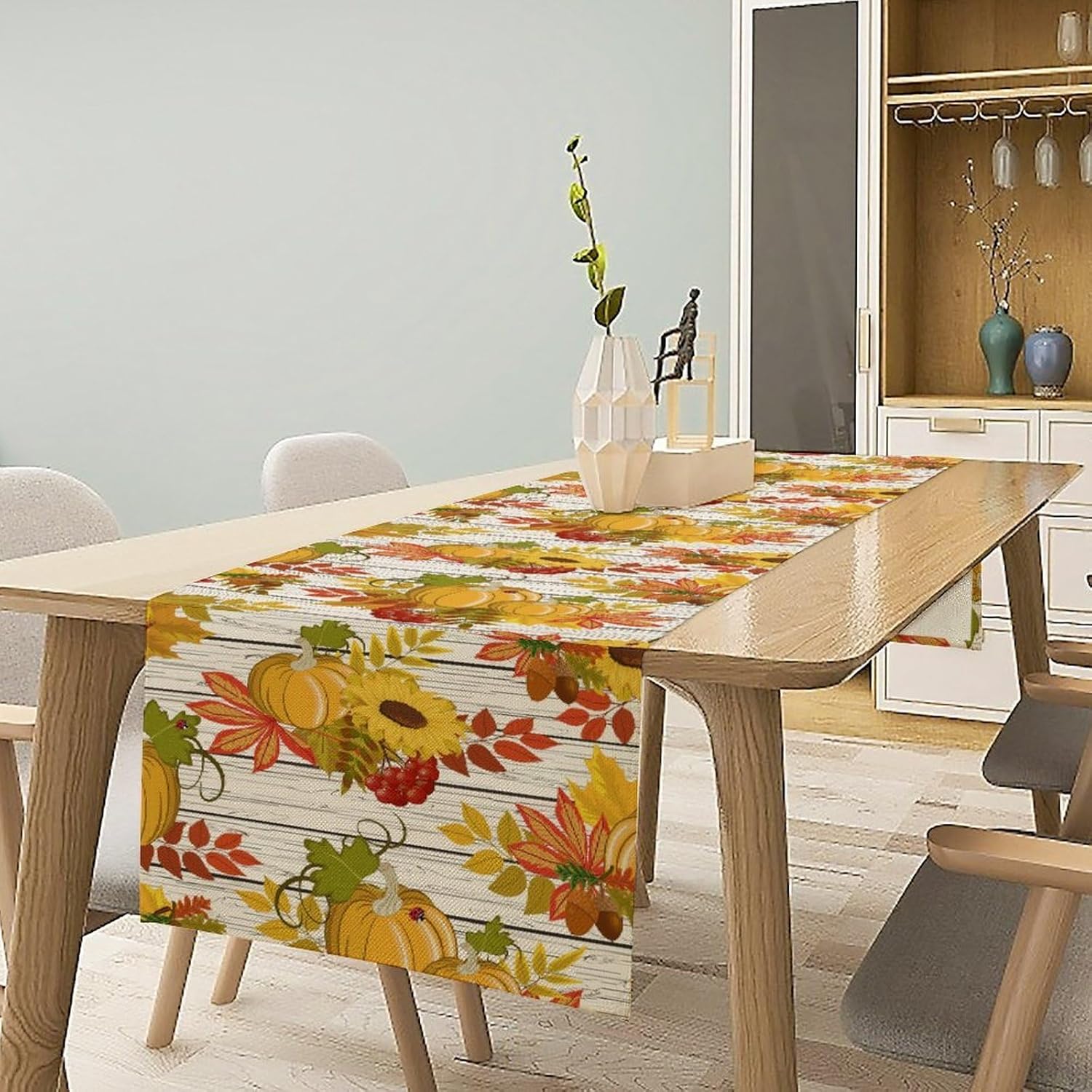 Autumn Table Runner,Seasonal Pumpkins Thanksgiving Kitchen Dining Table Decoration for Home Party Decor 13x90 Inch
