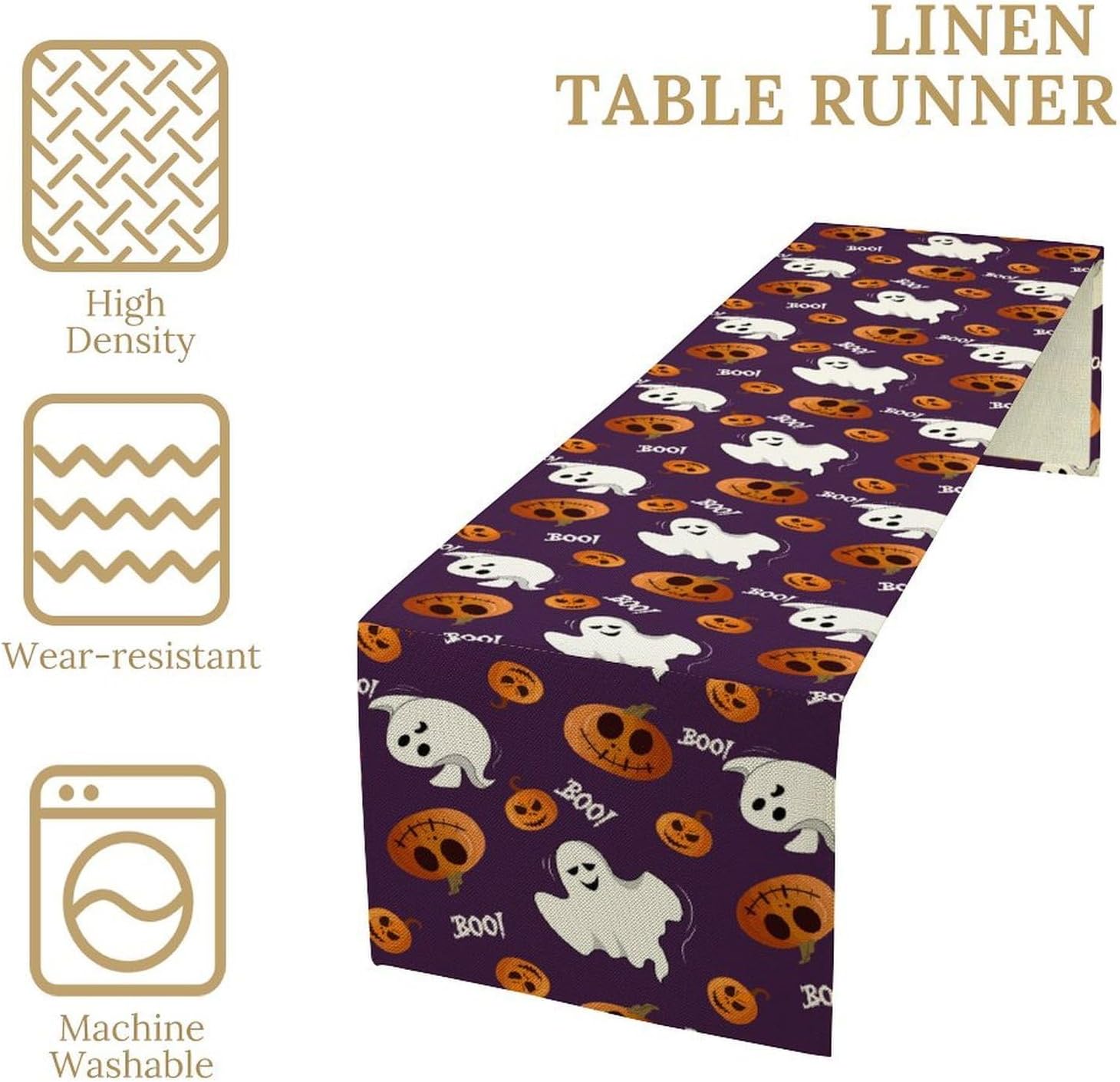 Halloween Table Runner,Ghost Pumpkin Halloween Table Runner for Kitchen Dining Table Decoration Home Party Decor 13x36 Inch