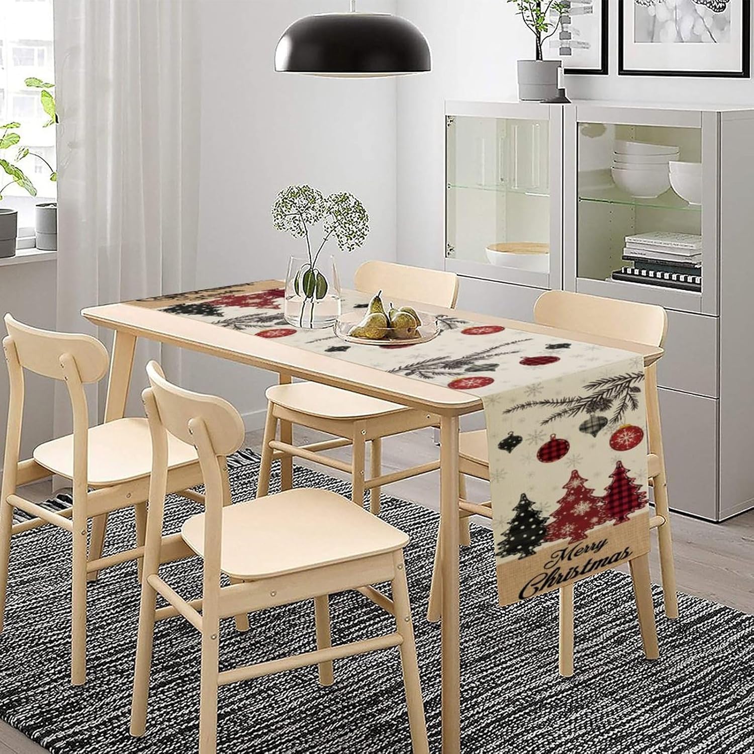 Merry Christmas Table Runner,Winter Xmas Holiday Kitchen Dining Table Decoration for Home Party Decor 13x120 Inch