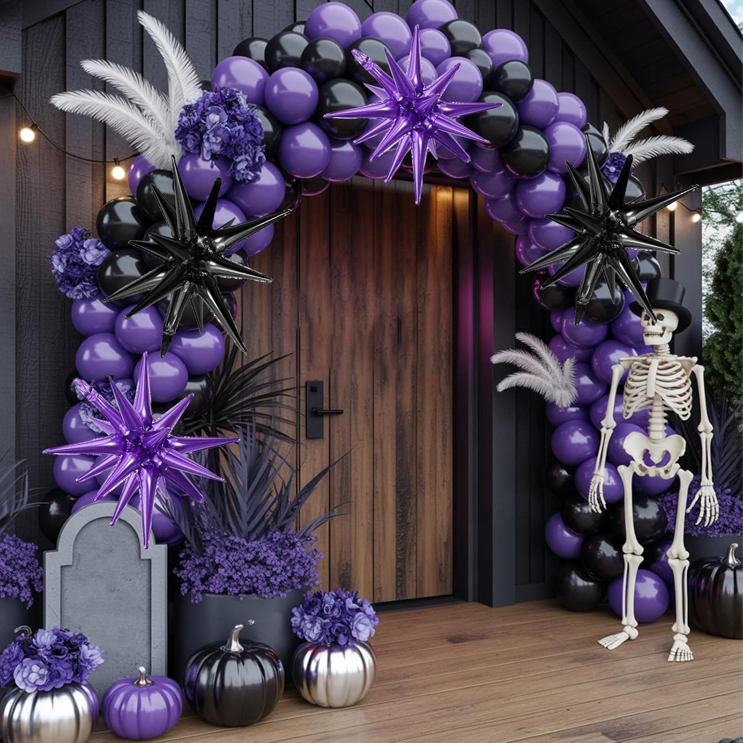 - Widely Application:Our black and purple star balloon set are great for birthday,Halloween,new year,anniversaries,graduation,baby shower,opening events,engagement,disco party and all kinds of theme party,can be decorated indoors or outdoors,great party decorations choice!