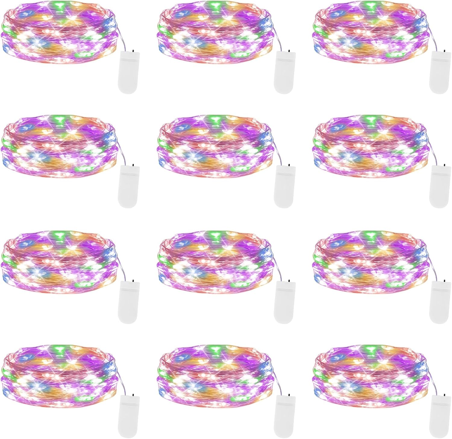 Lakumu 12 Pack Multi-Color Fairy Lights Battery Operated, 7ft 20 LED Waterproof Micro Firefly Lights for DIY Craft, Wedding Table Centerpieces, Christmas Decor, Bedroom