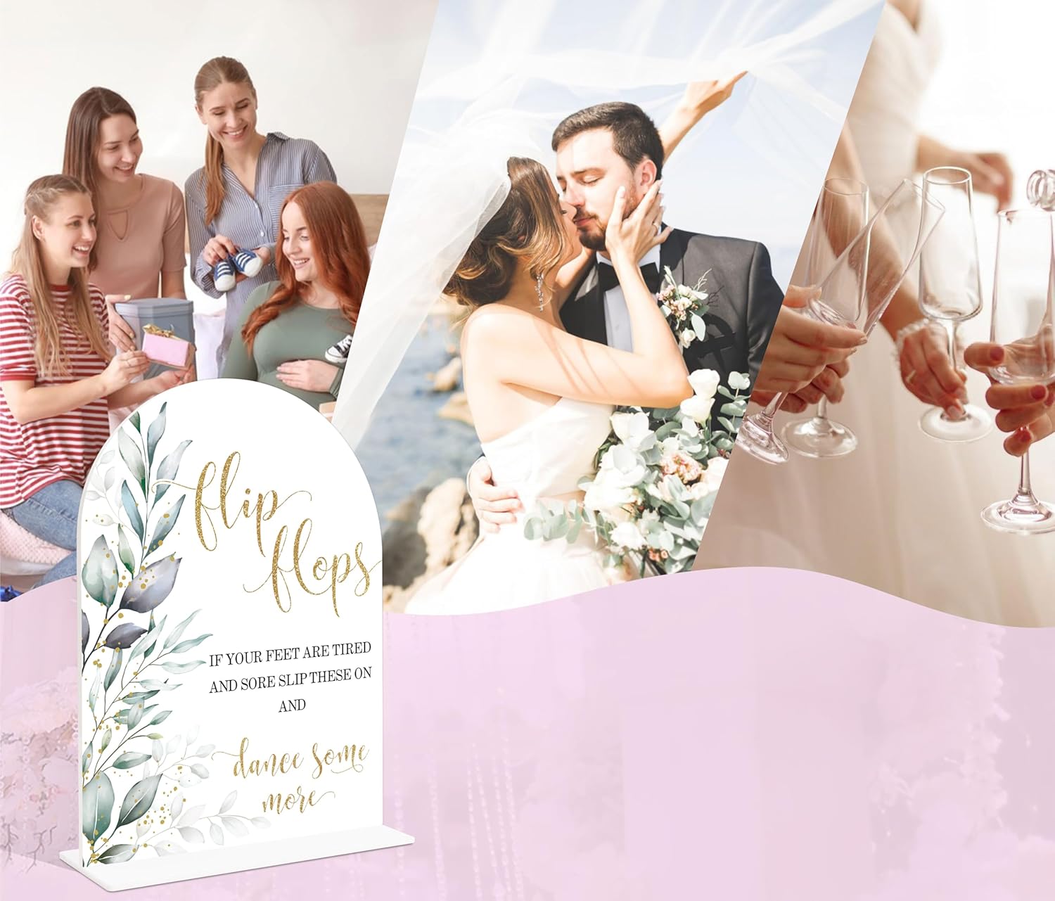 Acrylic Wedding Signs, Greenery Theme Flip Flops Sign, Wedding Reception Signage, Bridal Shower Table Decor with Stand, Engagement, Anniversary, Newlywed Events Supplies for Dance Floor Decor, 13
