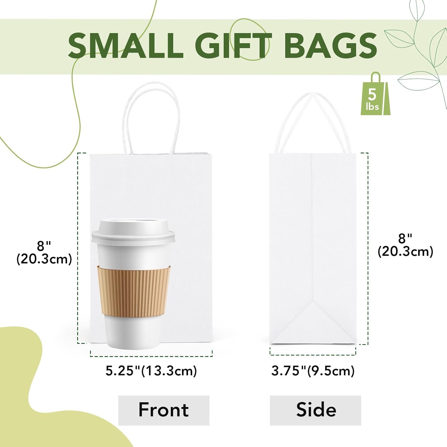 - Eco-Friendly Paper Bags:These 200 pcs white paper bags are made from recycled kraft, biodegradable and recyclable. The 5.25x3.75x8 Inch size fits small items, perfect for eco-conscious gifting or small business use, blending sustainability with practicality.
