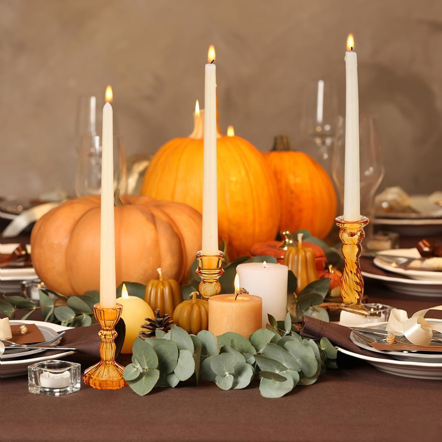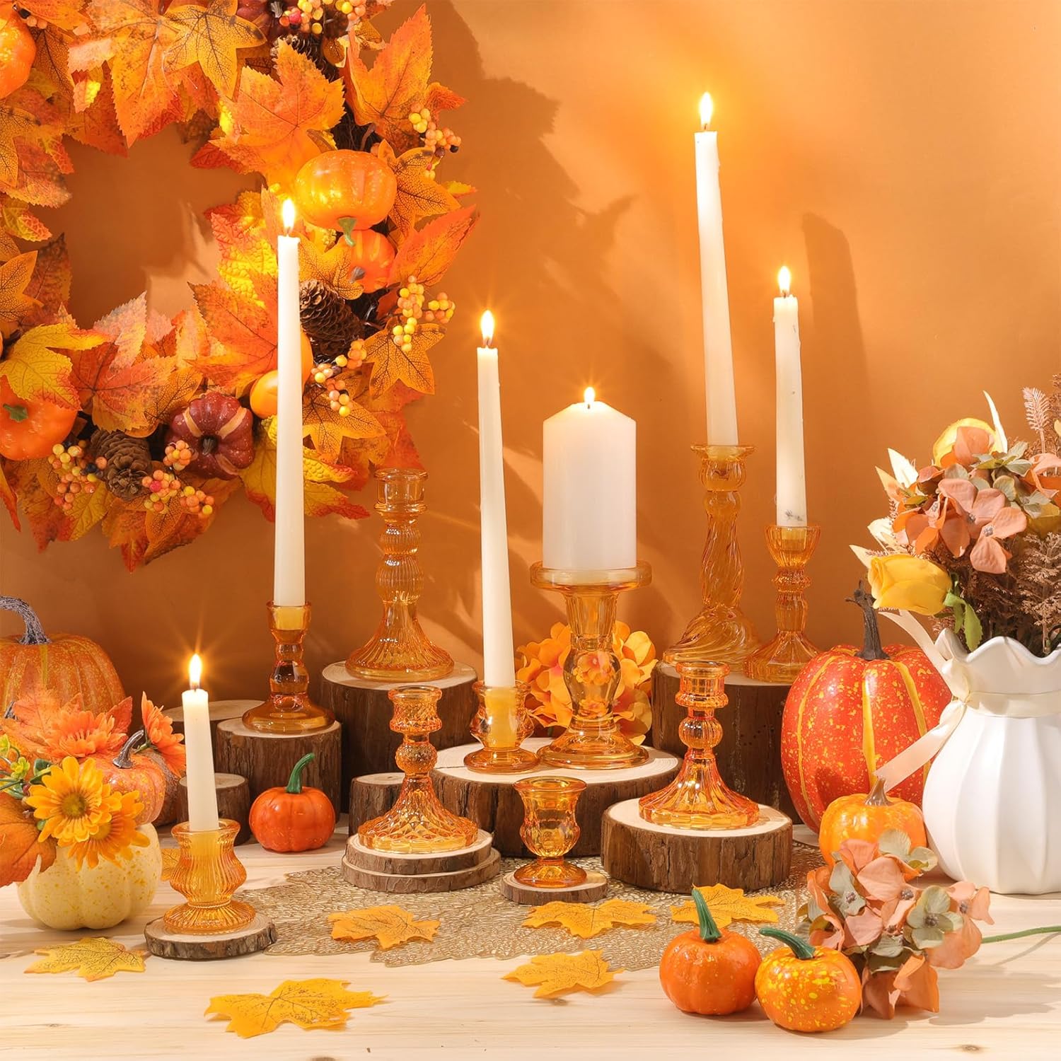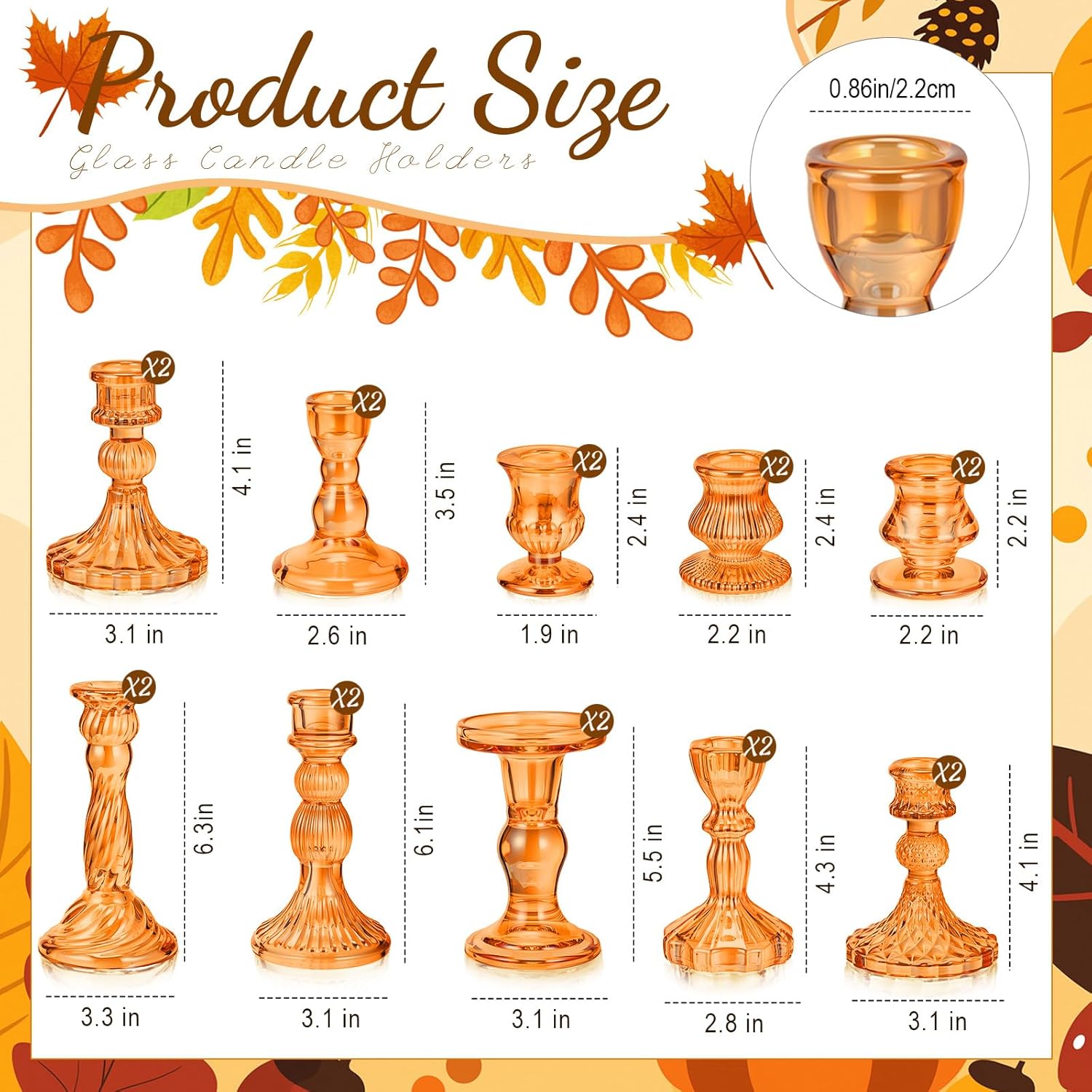 - Package Contents: you will receive 10 pieces 10 style orange glass candle holders in different sizes, which have different heights, smooth shapes and smooth finishes; The candlestick holder adds a clean, and elegant aesthetic to any space, it is suitable for a variety of candles
