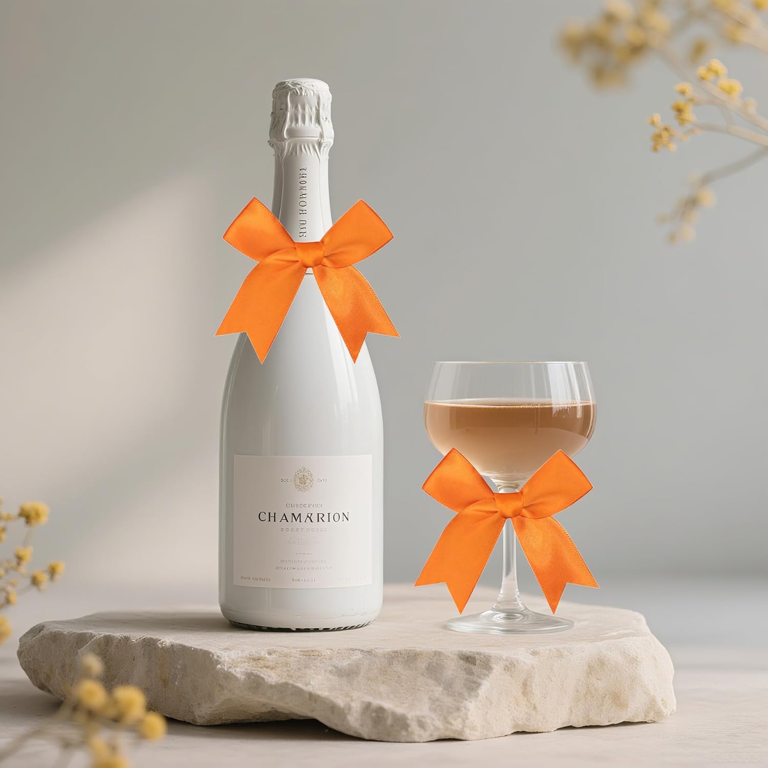 50 PCS Twist Tie Bows Satin Ribbon Bows 3.3 Inch Gift Wrap Bows Craft Bows for Gift Wrapping, Party Decorations Gifts Bag DIY Treat Bags Wedding Decor Baby Shower Christmas (Orange)