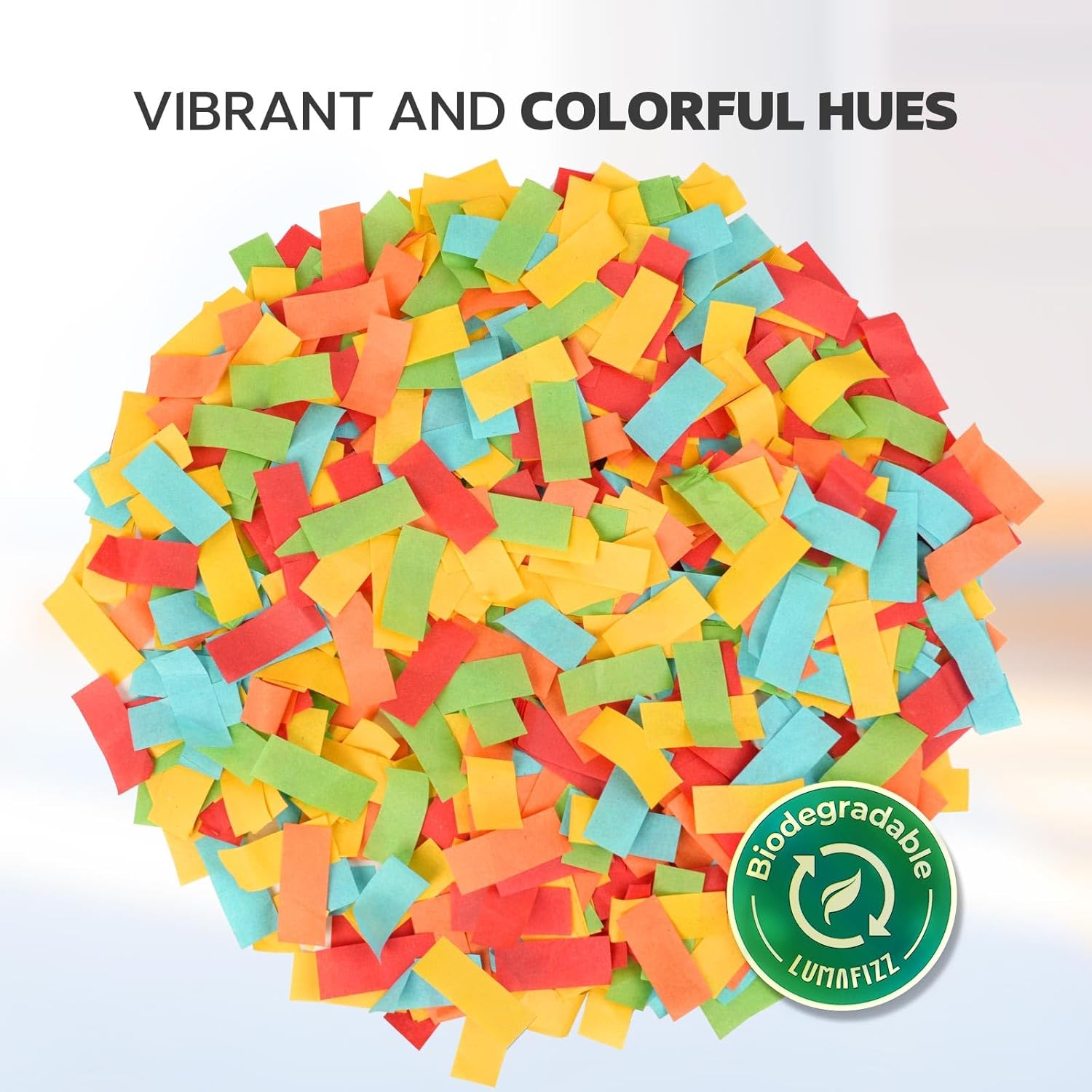 - 【EARTH-FRIENDLY CONFETTI】Love the planet while your Confetti Cannon lights up the sky. Every Confetti flutter is premium, dye-rich paper—100% biodegradable. Wind, rain, sunshine will guide it home, typically breaking down in weeks (Mother Nature’s encore, not a vanishing act). Celebrate bold with your Confetti Cannon, leave nothing but memories.