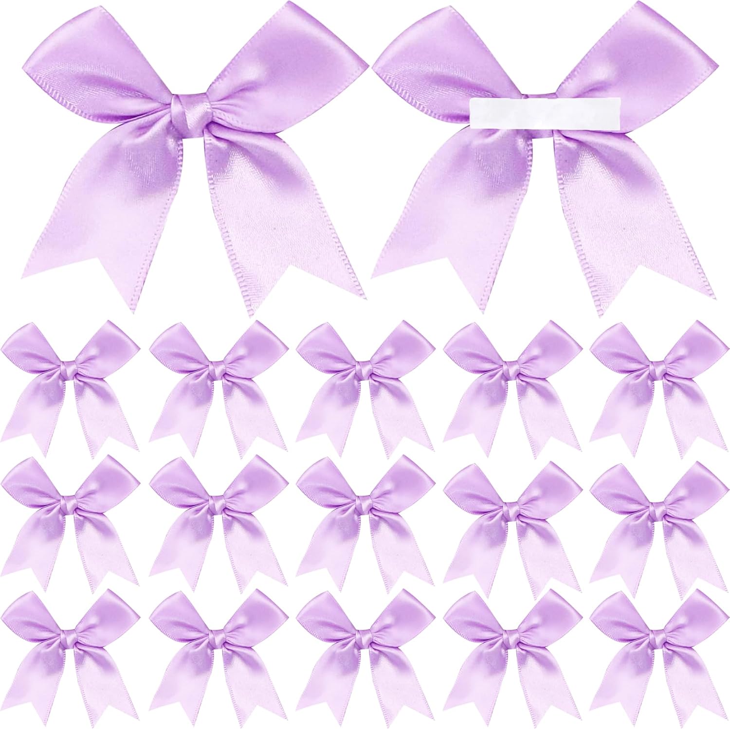 50 Pieces Gift Wrap Bows Premium Satin Ribbon Bows 3.3 Inch Craft Bows for Gift Wrapping DIY Treat Bags Holiday Gifts Bag Party Decorations, Wedding Decor Christmas Birthday Presents (Light Purple)