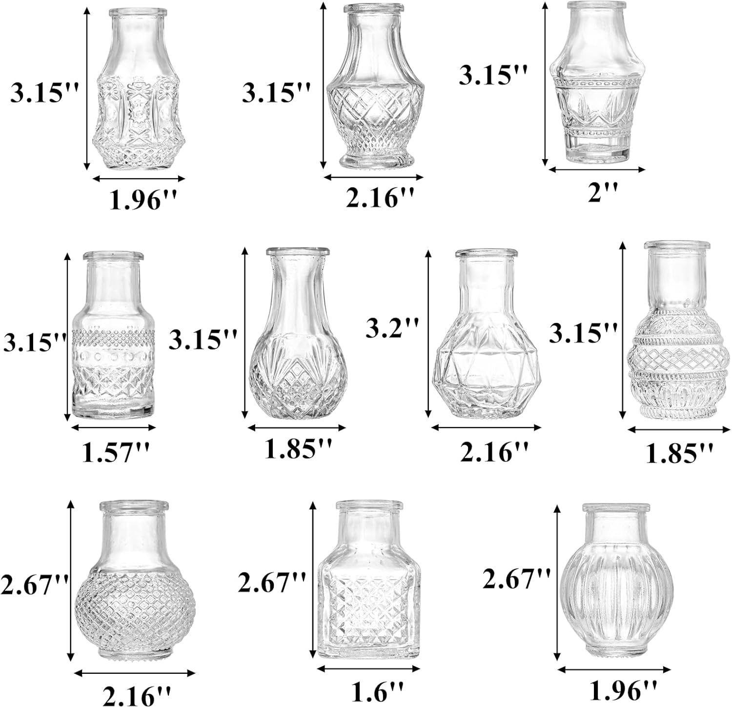 - Vintage Design: Each unique mini vase comes in a different design, size and shape. These vases are suitable for single stems in all seasons. You can combine flowers, or dried flower and elegant vases in your way