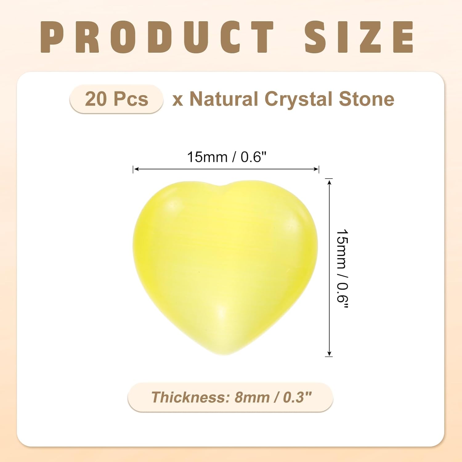 PATIKIL 20 Pcs Natural Heart Shaped Crystal Stone, 0.6 Inch Mini Polished Love Gemstone Crystal, Pocket Rock Engraved Worry Stones for Women Gifts Meditation, Bright Yellow