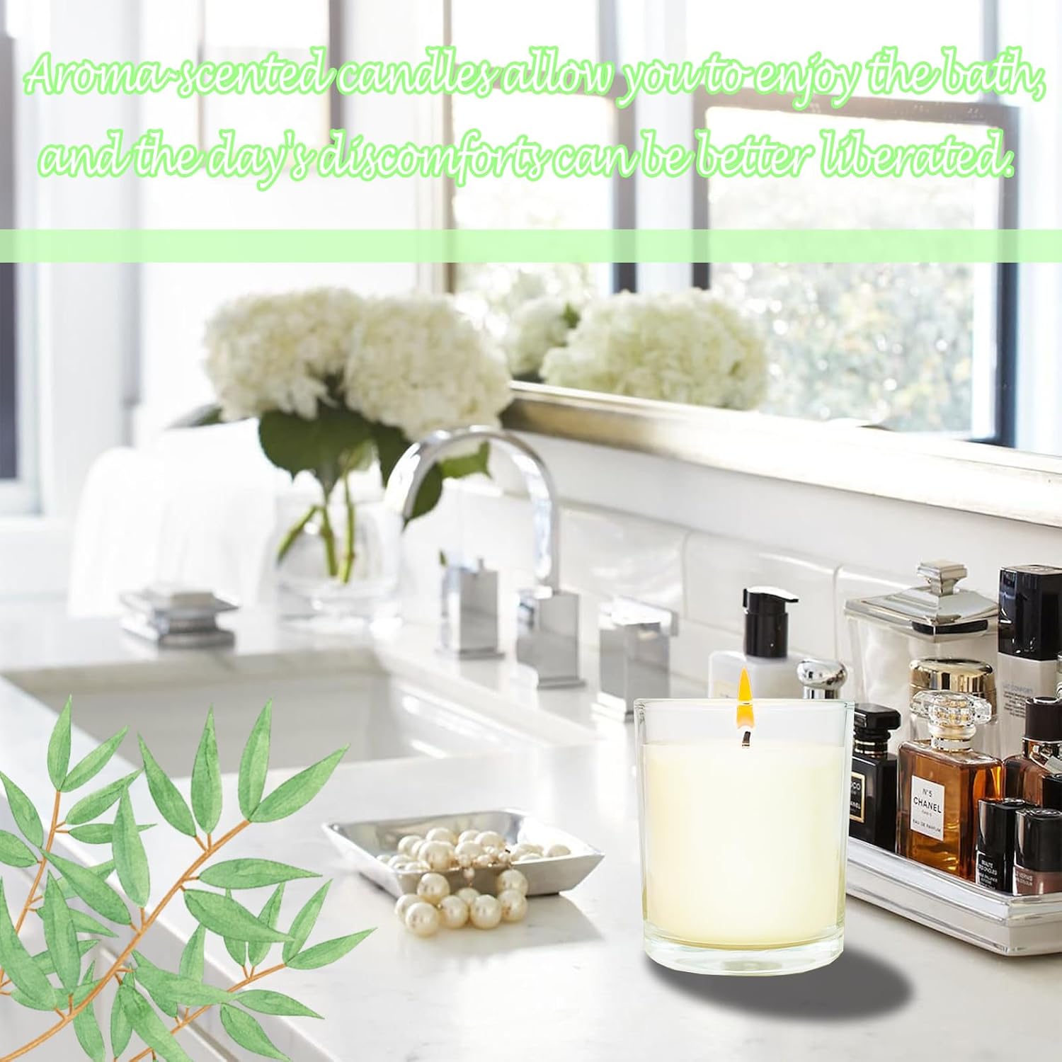 - 🪔🪔SAFE DESIGN: Our aromatherapy candles are made of soy and eucalyptus, the bottle is designed by Mason jar shape and white color, the soy candles are smoke-free and harmless and safer, along with the light eucalyptus fragrance has a relaxing and soothing effect, which is good for relieving your stress and relaxing your spirit when you are fatigued.