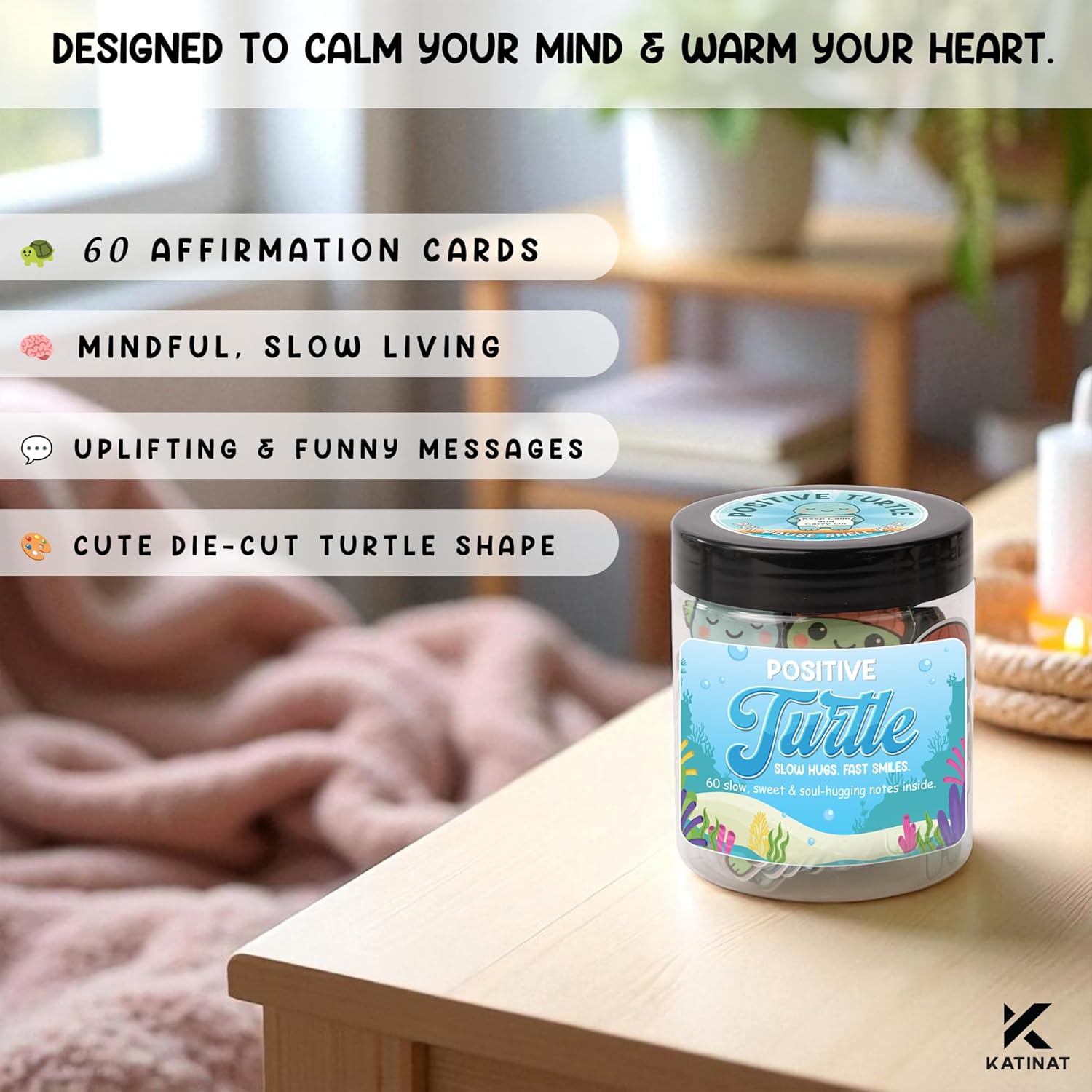 Positive Turtle Jar – 60 Funny Emotional Support Affirmation Cards, Sea Turtle Gifts for Women, Teens, Tweens, Girls, Turtle Decor, Trendy Teen Girl Stuff, Back to School Gifts, Teachers Gift