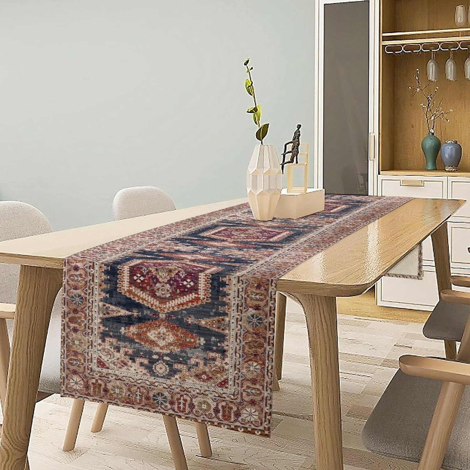 Vintage Boho Table Runner,Flower Geometric Design Rustic Farmhouse Table Runner for Home Farmhouse Kitchen Table Dining Coffee Room Garden Party Wedding Decor 13x36in