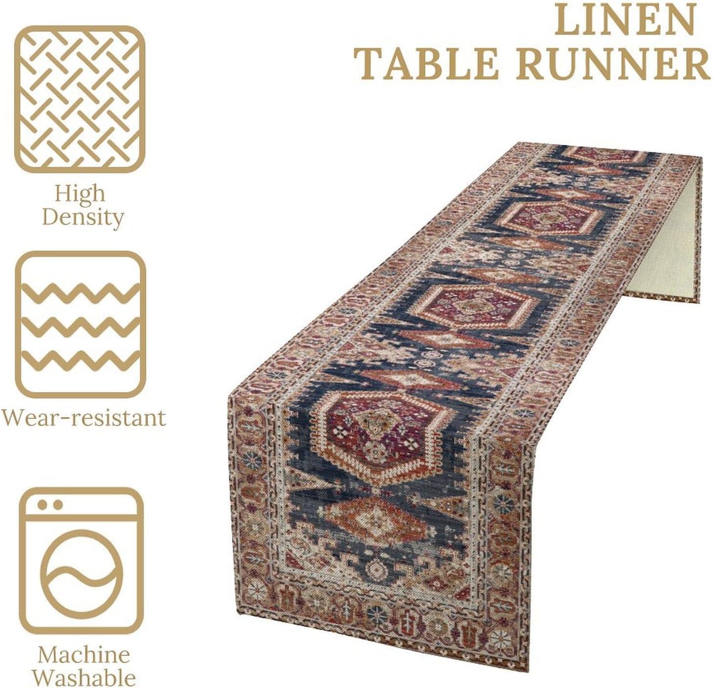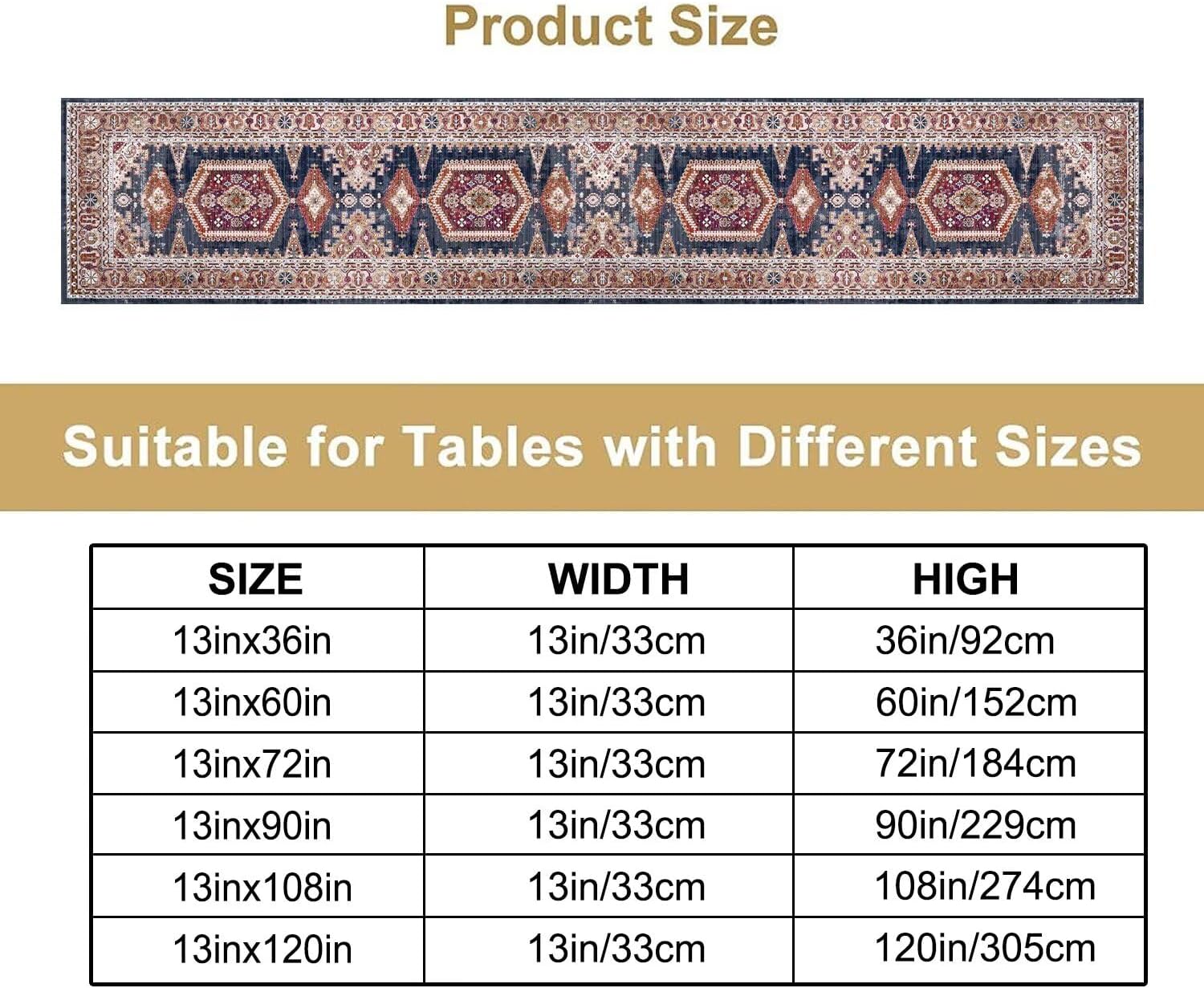 Vintage Boho Table Runner,Flower Geometric Design Rustic Farmhouse Table Runner for Home Farmhouse Kitchen Table Dining Coffee Room Garden Party Wedding Decor 13x120in
