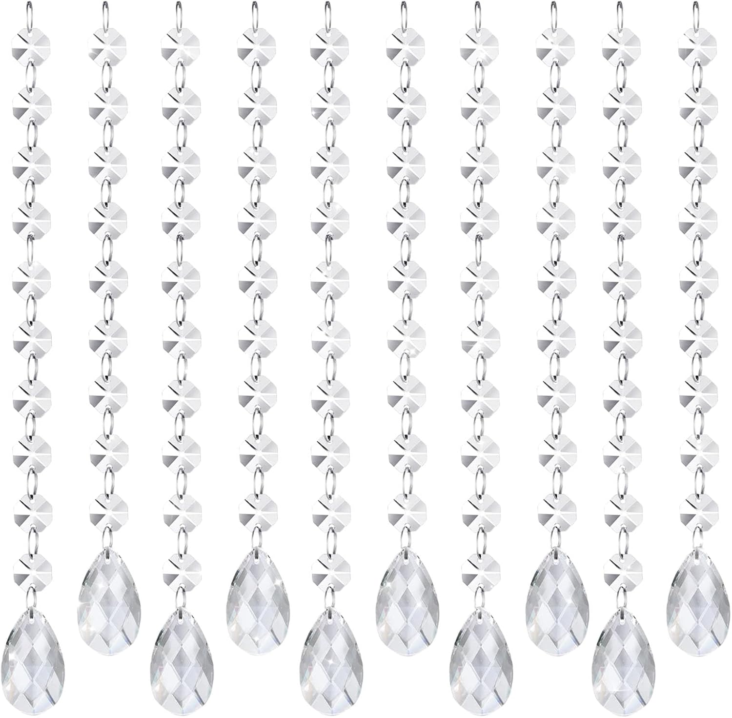 - 【Product Include】You will receive 10 pcs of crystal garland strands. The clear octagon bead is 14mm each; The metal split ring is 12mm each; The teardrop crystal is 30mm x 15mm; total 10 Strings, one string is 3.3ft long; the total length of the crystal garland strands is 33ft. The crystal octagon beads are connected by metal split rings and are easy to disassemble, so you can adjust the length according to the decoration needs.