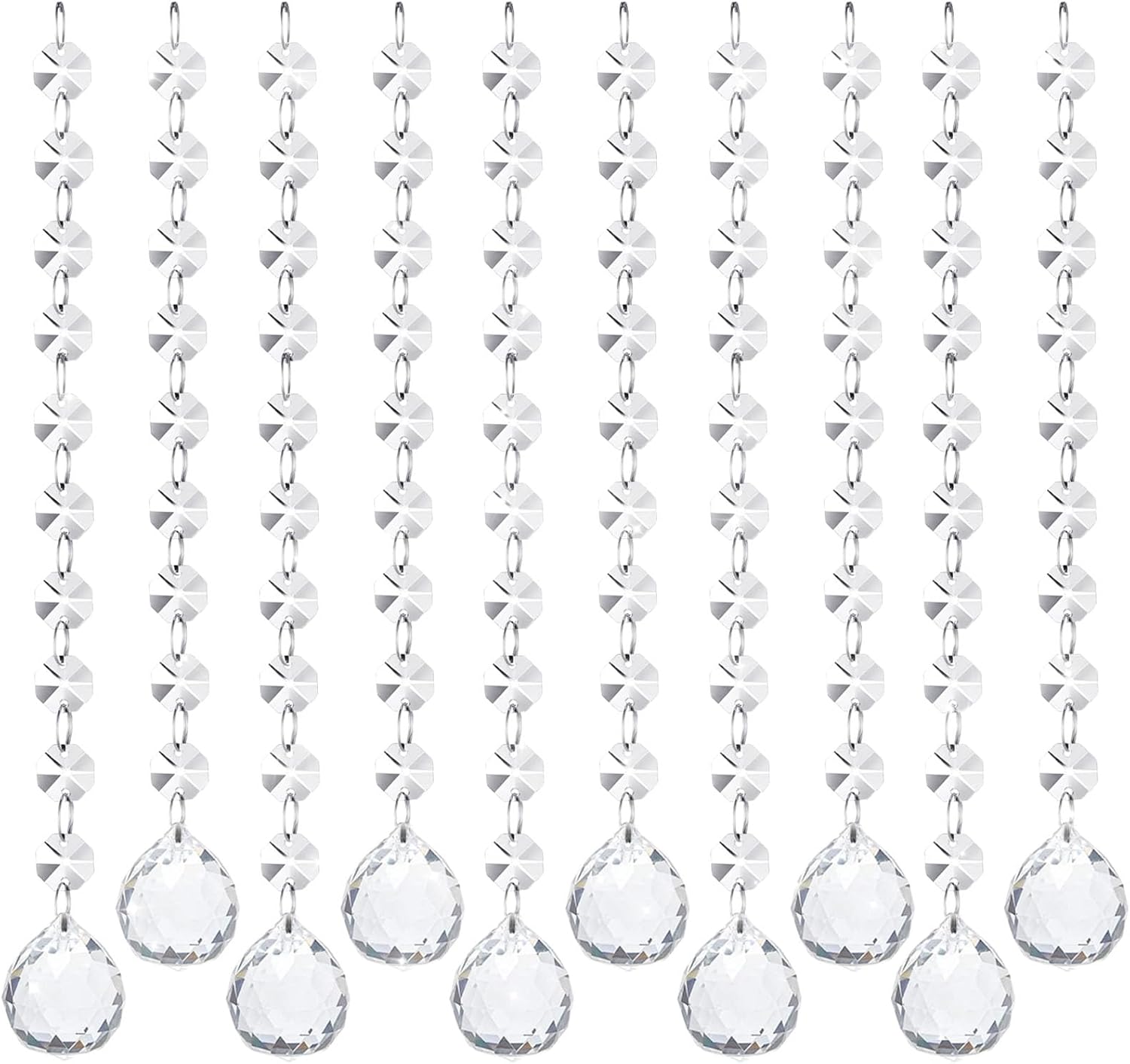 - 【Product Include】You will receive 10 pcs of crystal garland strands. The clear octagon bead is 14mm each; The metal split ring is 12mm each; The teardrop crystal is 30mm x 15mm; total 10 Strings, one string is 3.3ft long; the total length of the crystal garland strands is 33ft. The crystal octagon beads are connected by metal split rings and are easy to disassemble, so you can adjust the length according to the decoration needs.