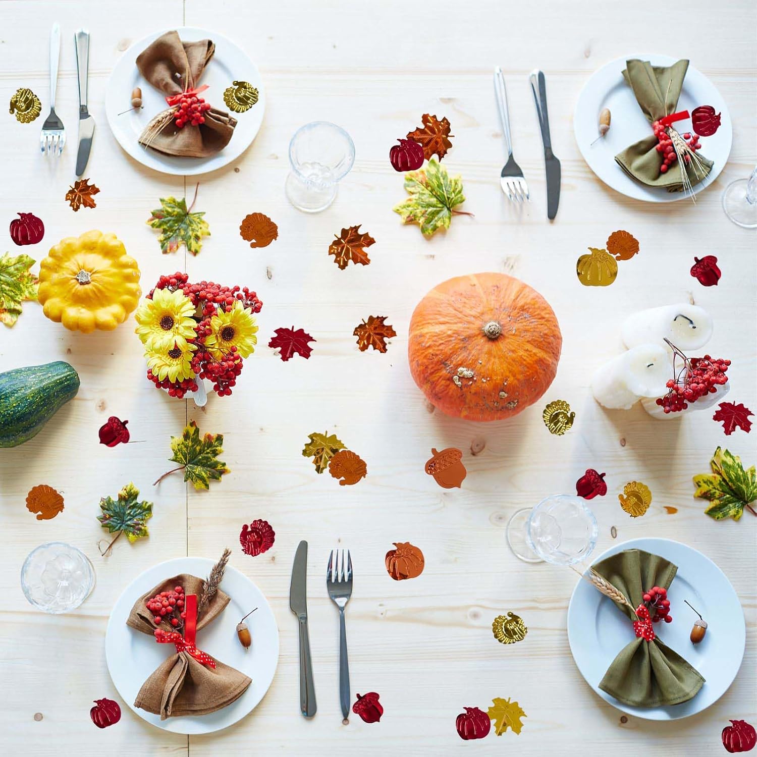 - Budget-Friendly Fall Thanksgiving Party Table Decorations: Pay less for these impressive fall thanksgiving party table confetti! 500pcs per pack, sufficient for decorating 6 tables, enough quantity to your Fall theme party.