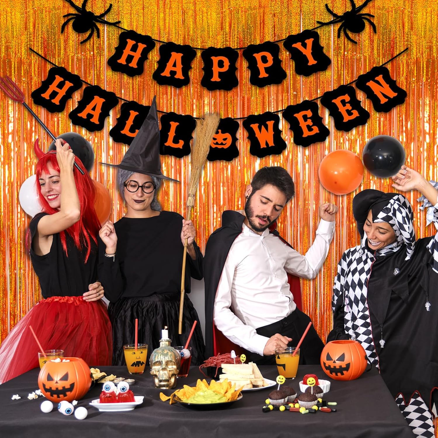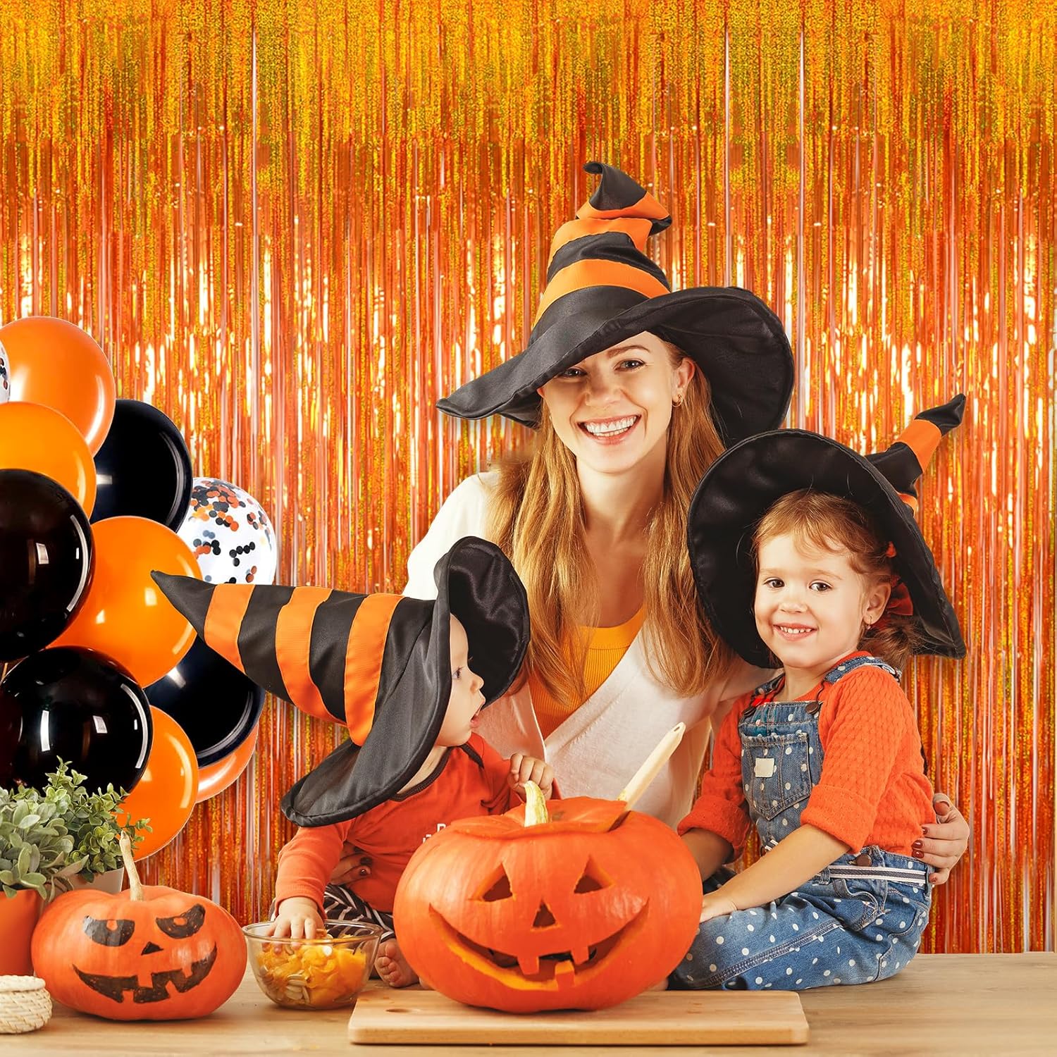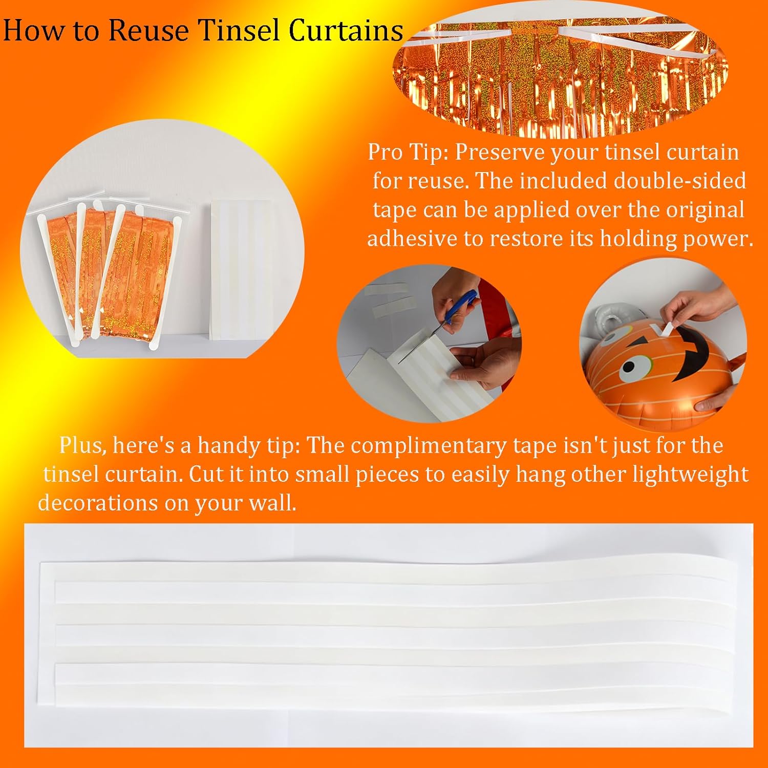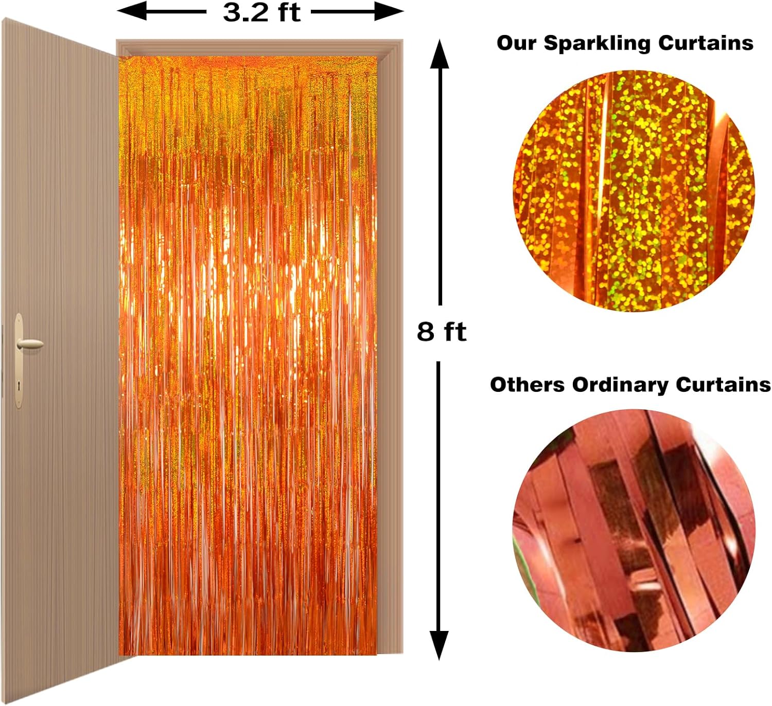 Reusable Foil fringe Curtains Halloween Decor Indoor Party Decorations - Melsan 3 Pack 3.2 x 8.2 ft Tinsel Curtain Party Photo Backdrop for Birthday Party Baby Shower or Graduation Decorations (Orange)