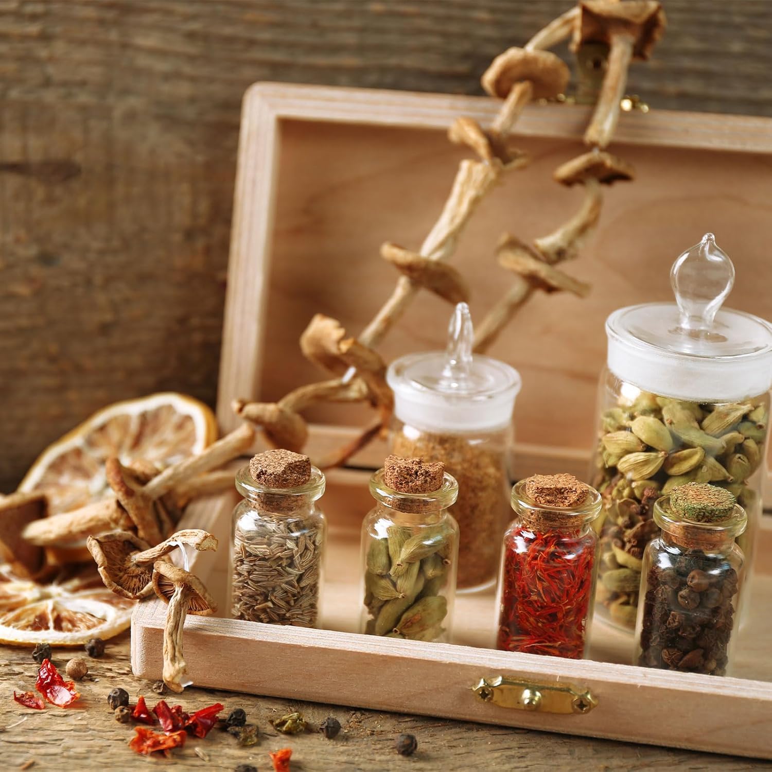 - Cautions: Handle the glass jars with care to avoid breakage. Ensure that the cork stoppers are properly sealed to maintain the airtight seal.