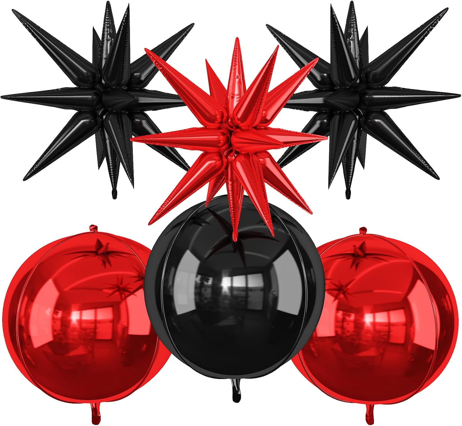 6Pcs Black Red Foil Balloons,22Inch Black Red 4D Round Ball Balloon and Explosion Star Balloon for Birthday Wedding Baby Shower Anniversary Party Decorations