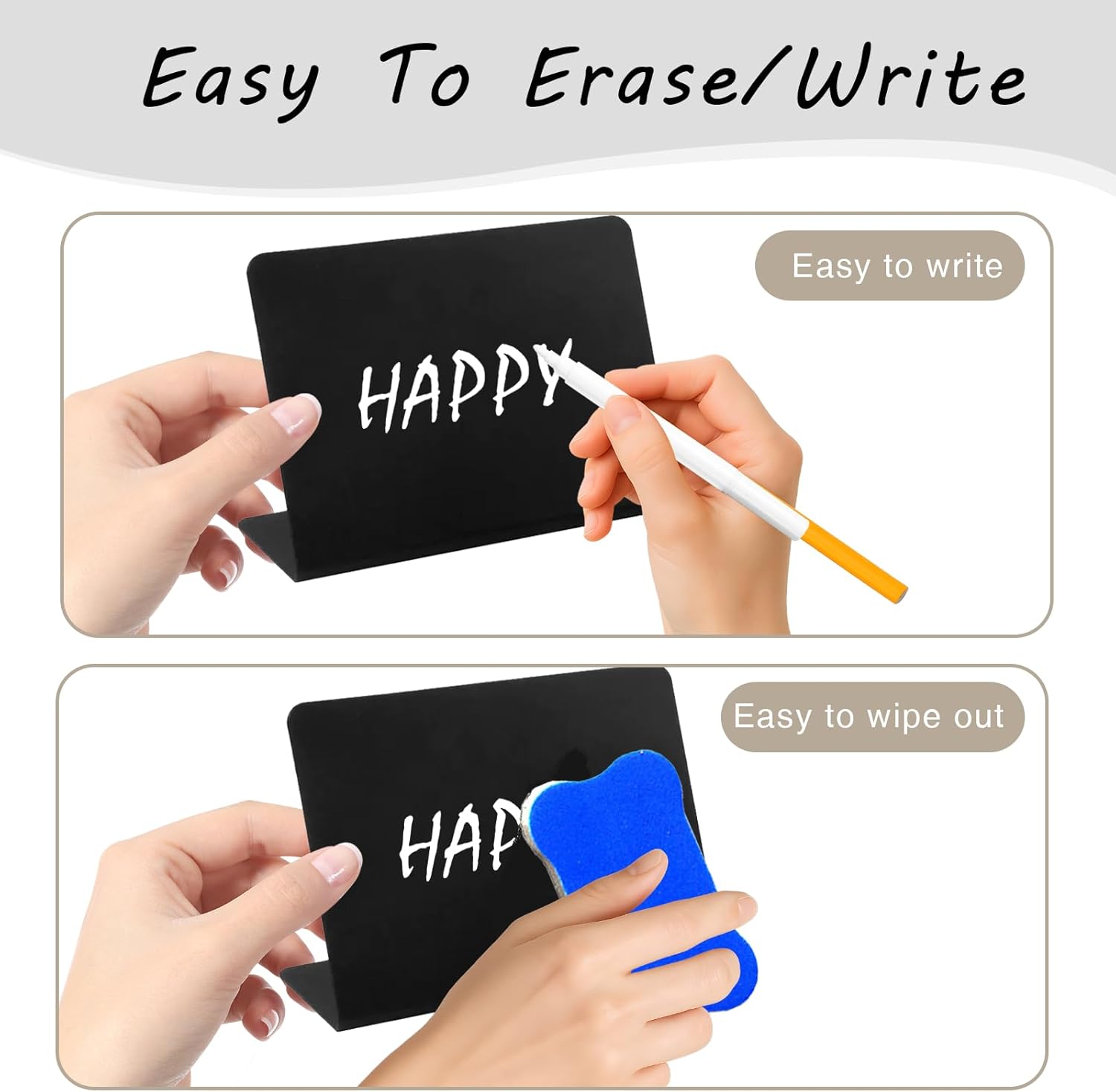- Pack: Contains 50 mini chalkboard signs, each measuring 10 cm x 7.5 cm (4 x 3 inches), making them suitable for bulk use in professional or personal settings