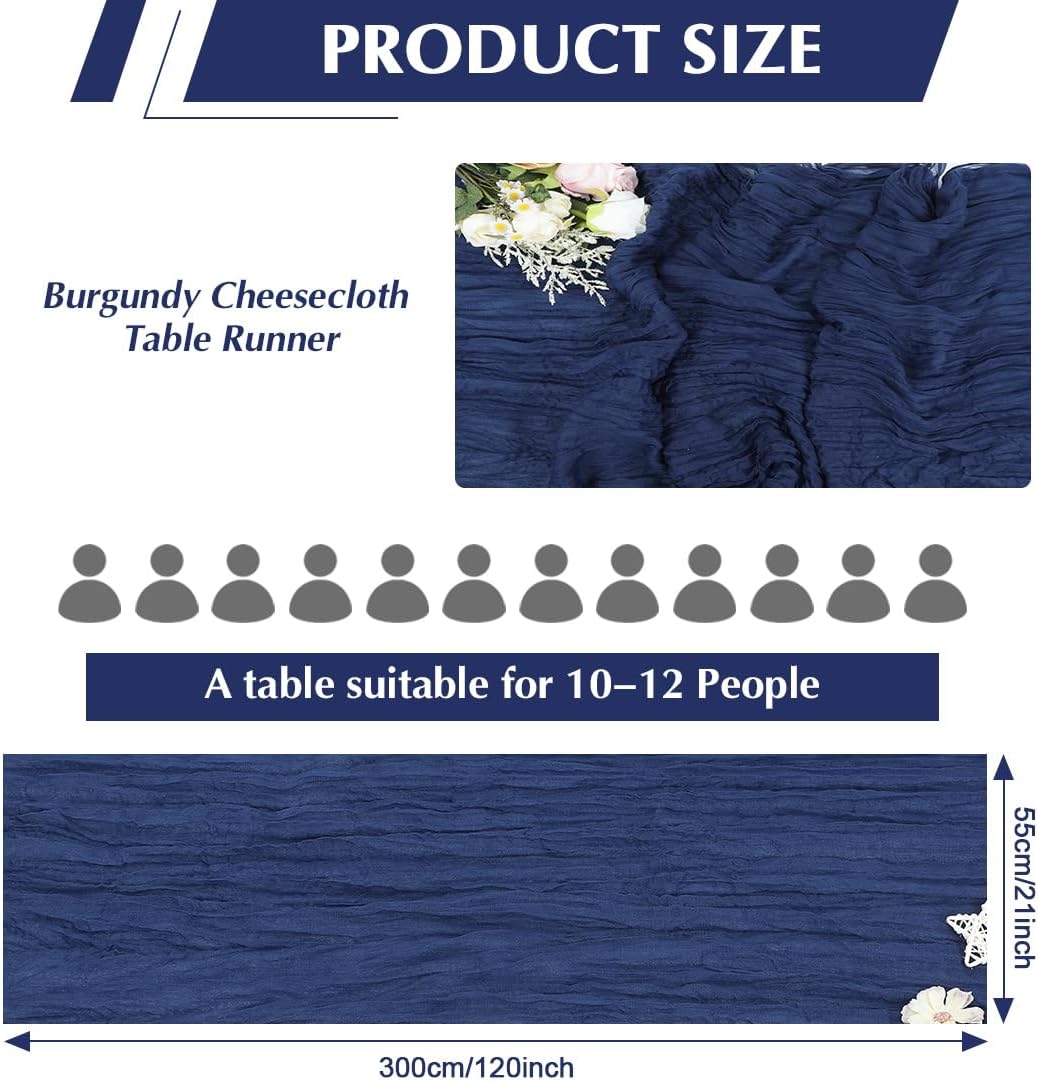 - Generous Size & Quantity: Each set includes 10 rustic cheesecloth table runners measuring 120" long x 21" wide - perfect for decorating banquet tables (rectangular, round or square), chair draping, or even as lightweight curtain panels. The extra length allows for elegant draping effects.