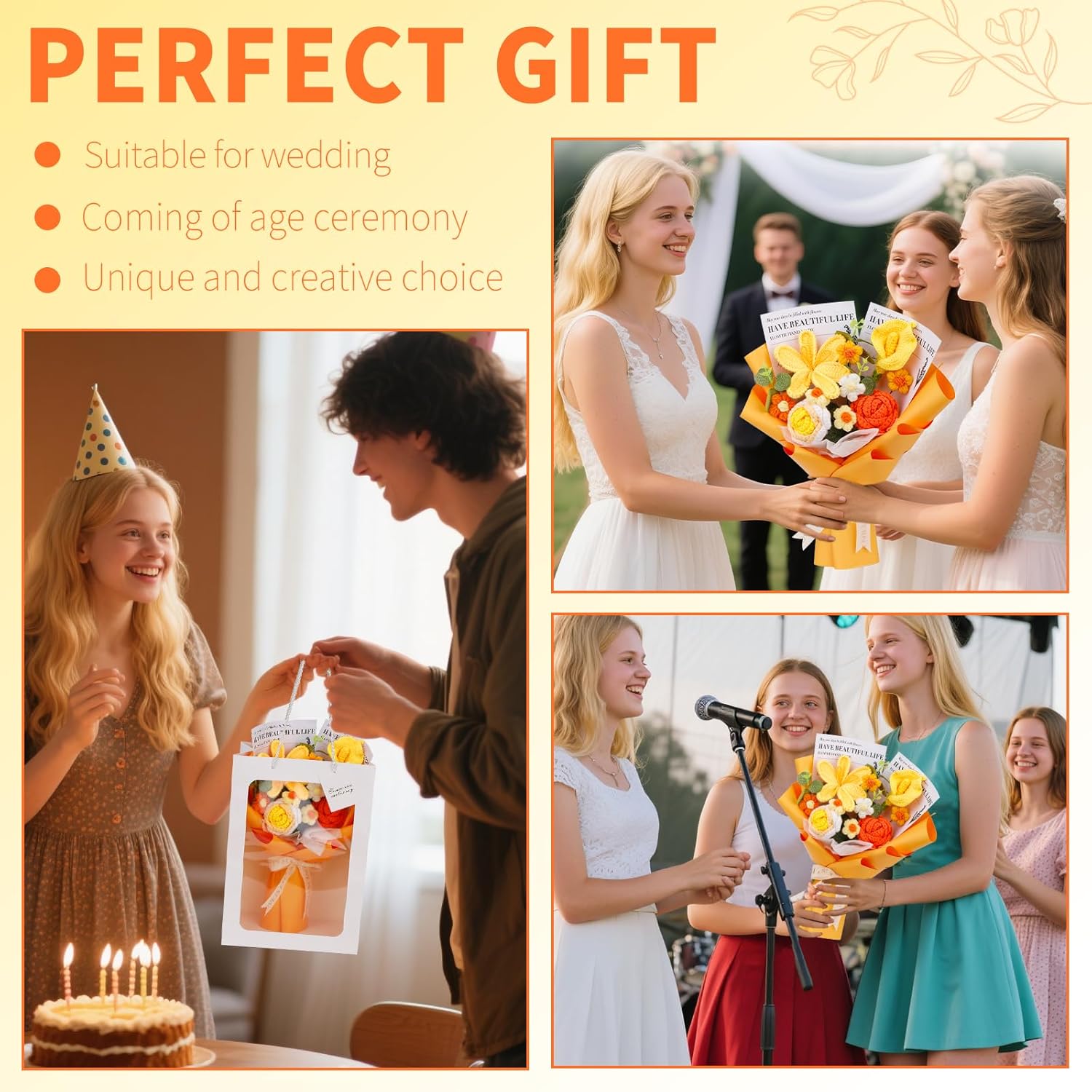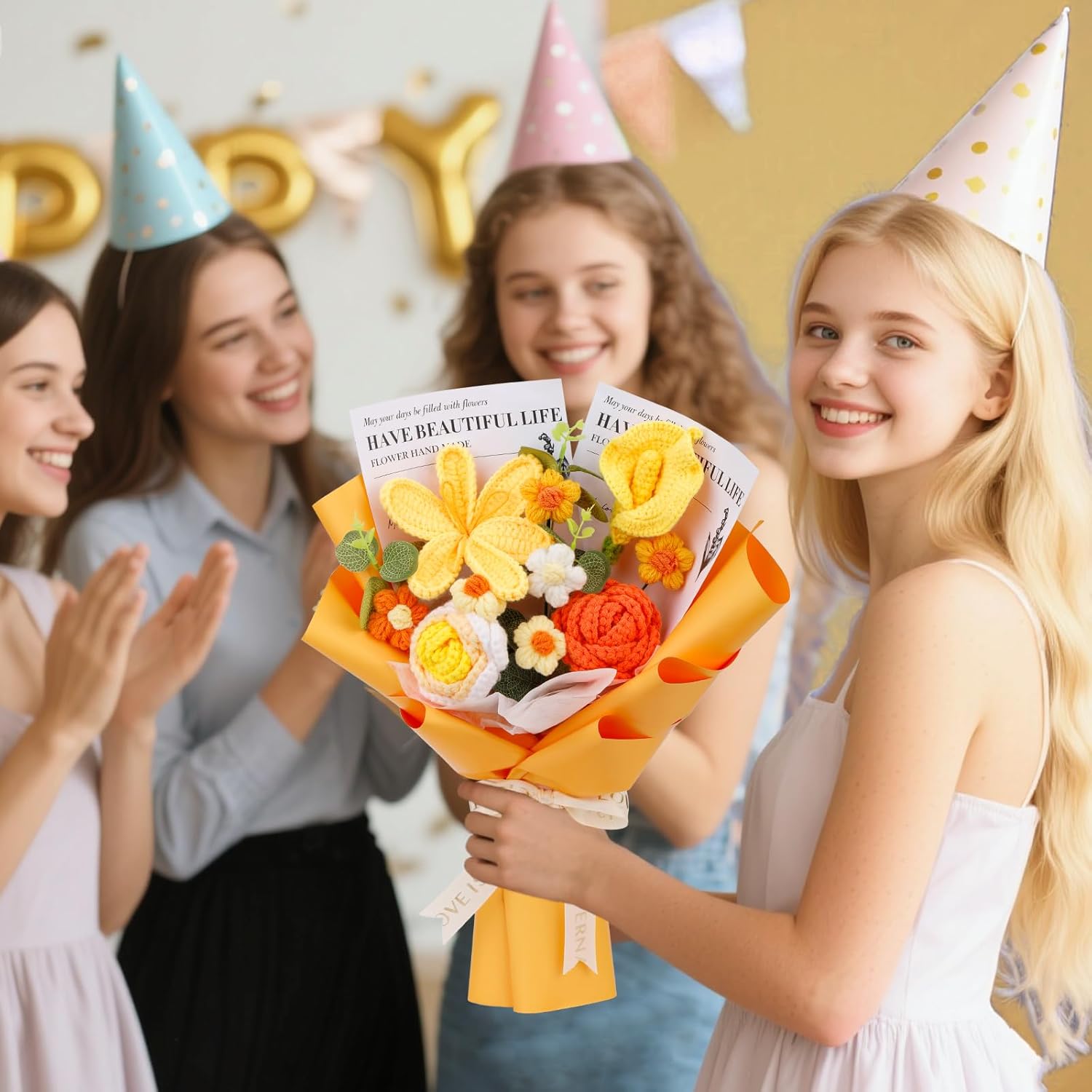 - High-Quality Materials: Each crochet flower is carefully crocheted with high-quality milk cotton yarn, which is soft and skin-friendly, with a delicate and gentle touch. Paired with exquisite high-end packaging gift bags, from the details to the overall design, it highlights the craftsmanship and style, giving every companionship and blessing a gentle and lasting sense of ritual.