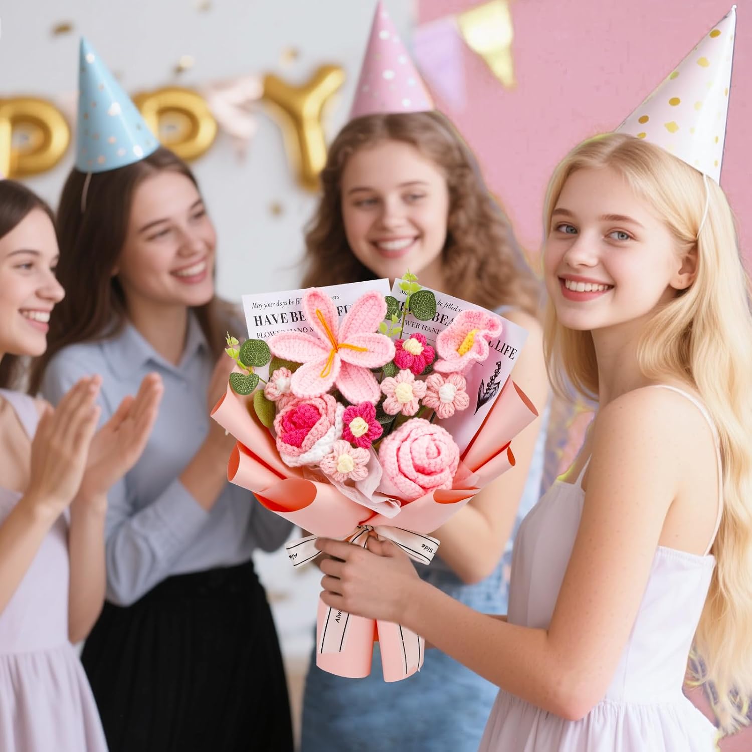 - High-Quality Materials: Each crochet flower is carefully crocheted with high-quality milk cotton yarn, which is soft and skin-friendly, with a delicate and gentle touch. Paired with exquisite high-end packaging gift bags, from the details to the overall design, it highlights the craftsmanship and style, giving every companionship and blessing a gentle and lasting sense of ritual.