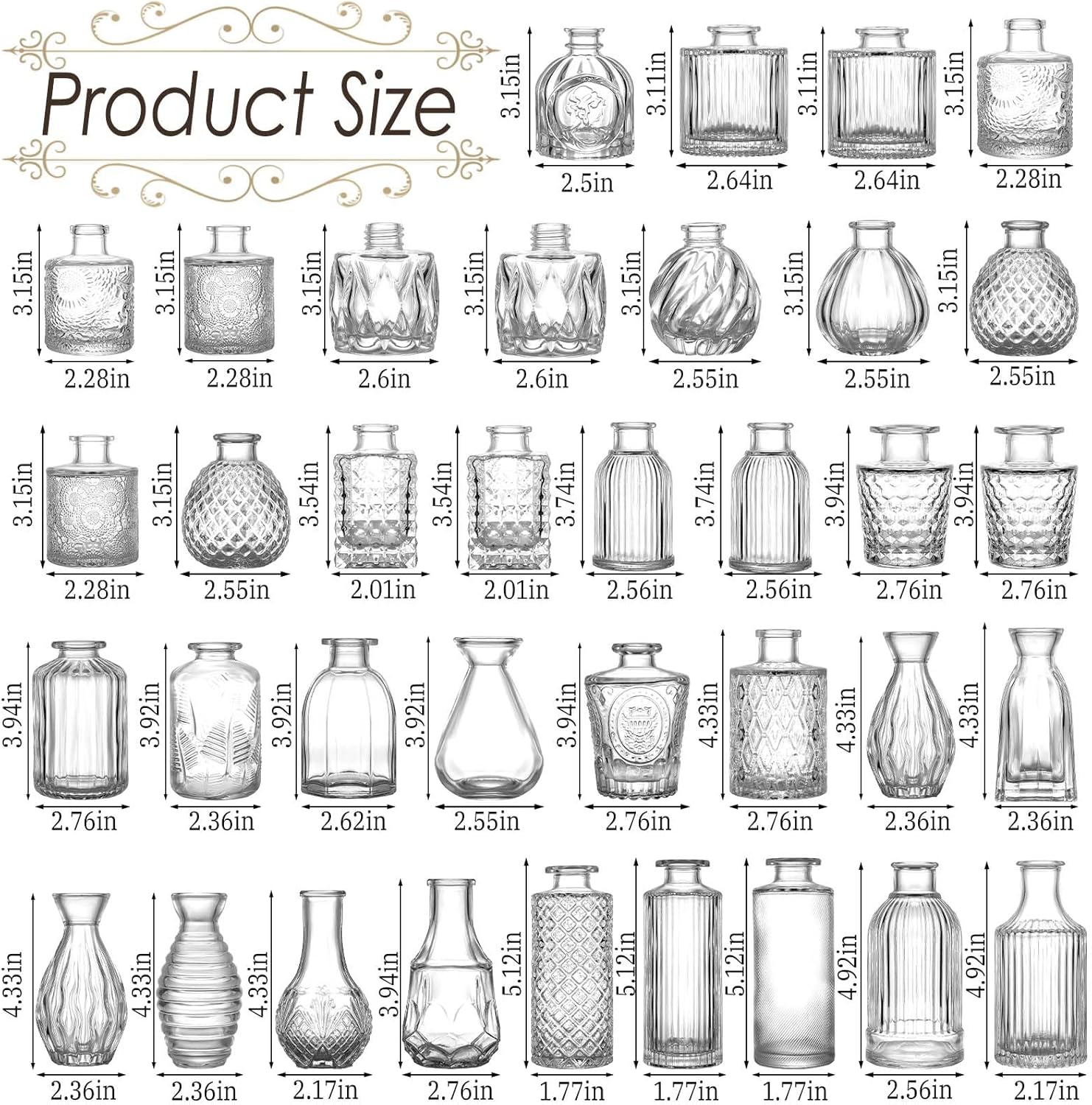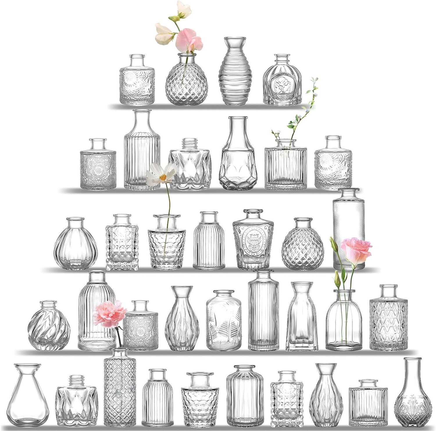 Clear Glass Bud Vases Set of 36, Mini Flower Vase for Centerpieces, Small Clear Vases in Bulk for Wedding Decorations, Vintage Vase for Table, Recepetion, Home Décor