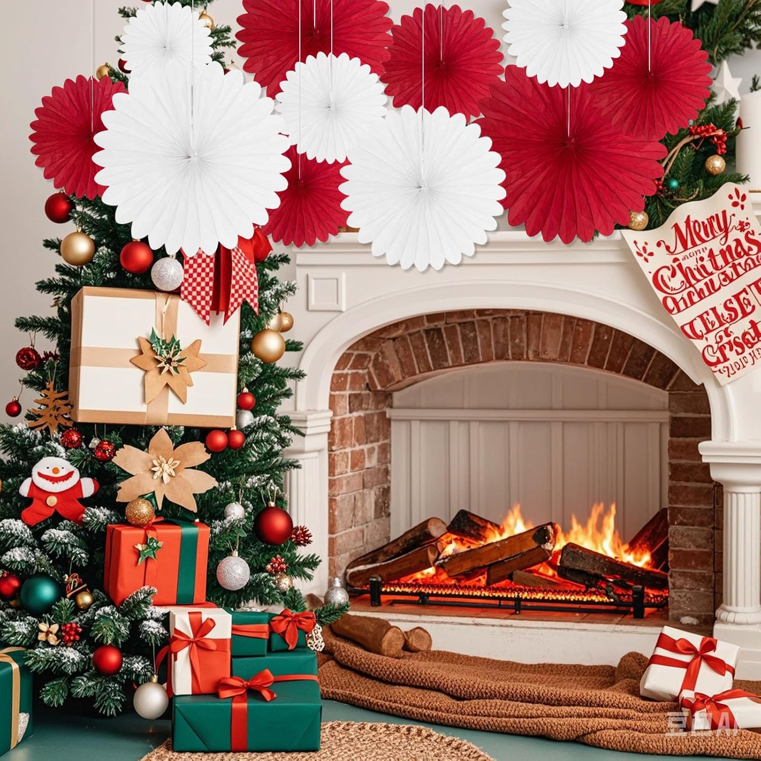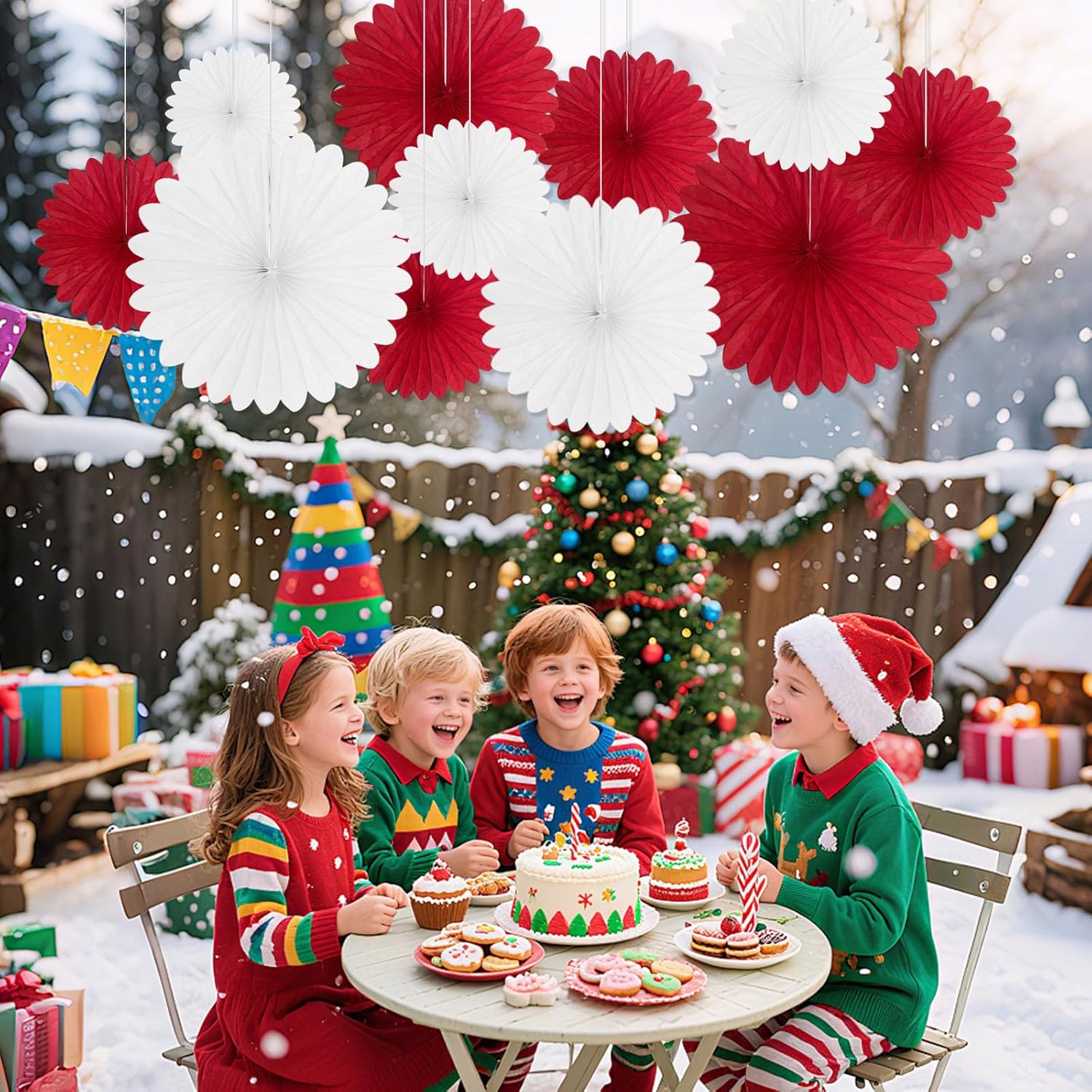 20 Pcs Red White Hanging Paper Fan, Hanging Honeycomb Round Paper Fans for Weddings, Birthdays, Christmas, Baby Showers, Classroom, Events Ceiling Party Supplies Decorations