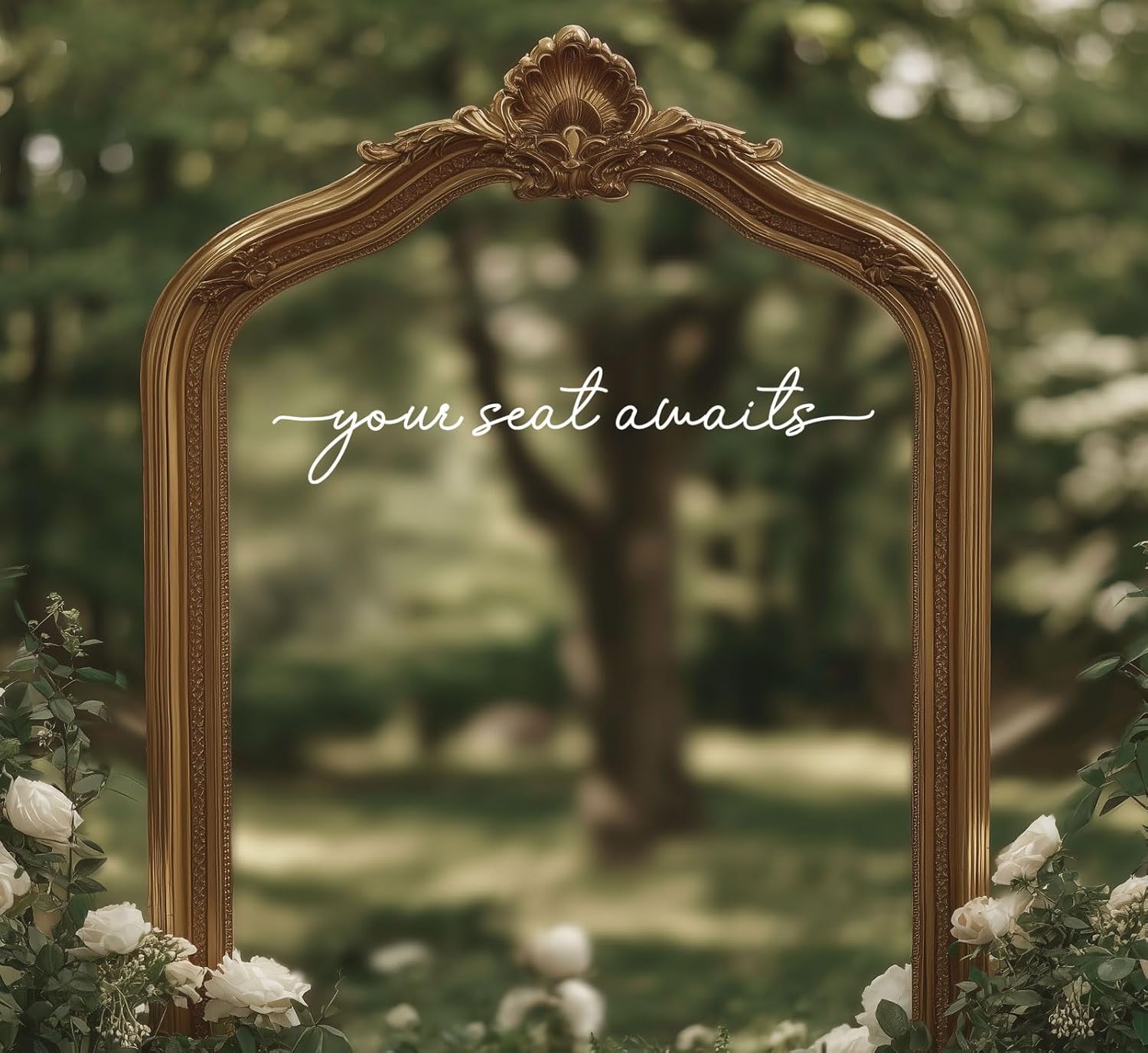 Your Seat Awaits Vinyl Decal, Wedding Seating Sticker, Mirror Decal for Seating, Please Find Your Seat Signs, Wedding Decor Sign (White, Width 20")