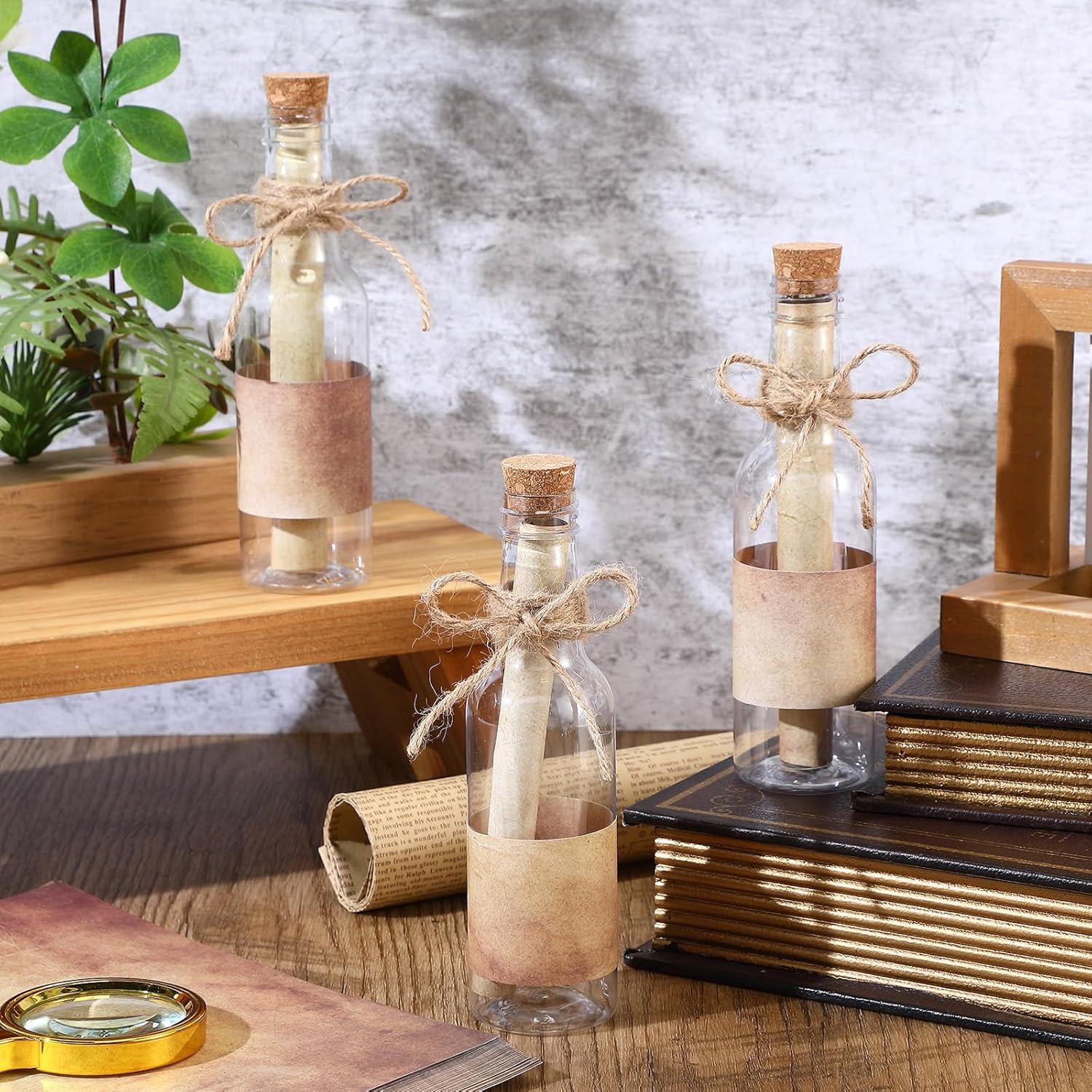 - Enough Package: the package includes 12 pieces of 5.6 oz message bottles with corks, comes with 15 sheets old looking design paper and 1 roll of twine, which are sufficient to meet your various use