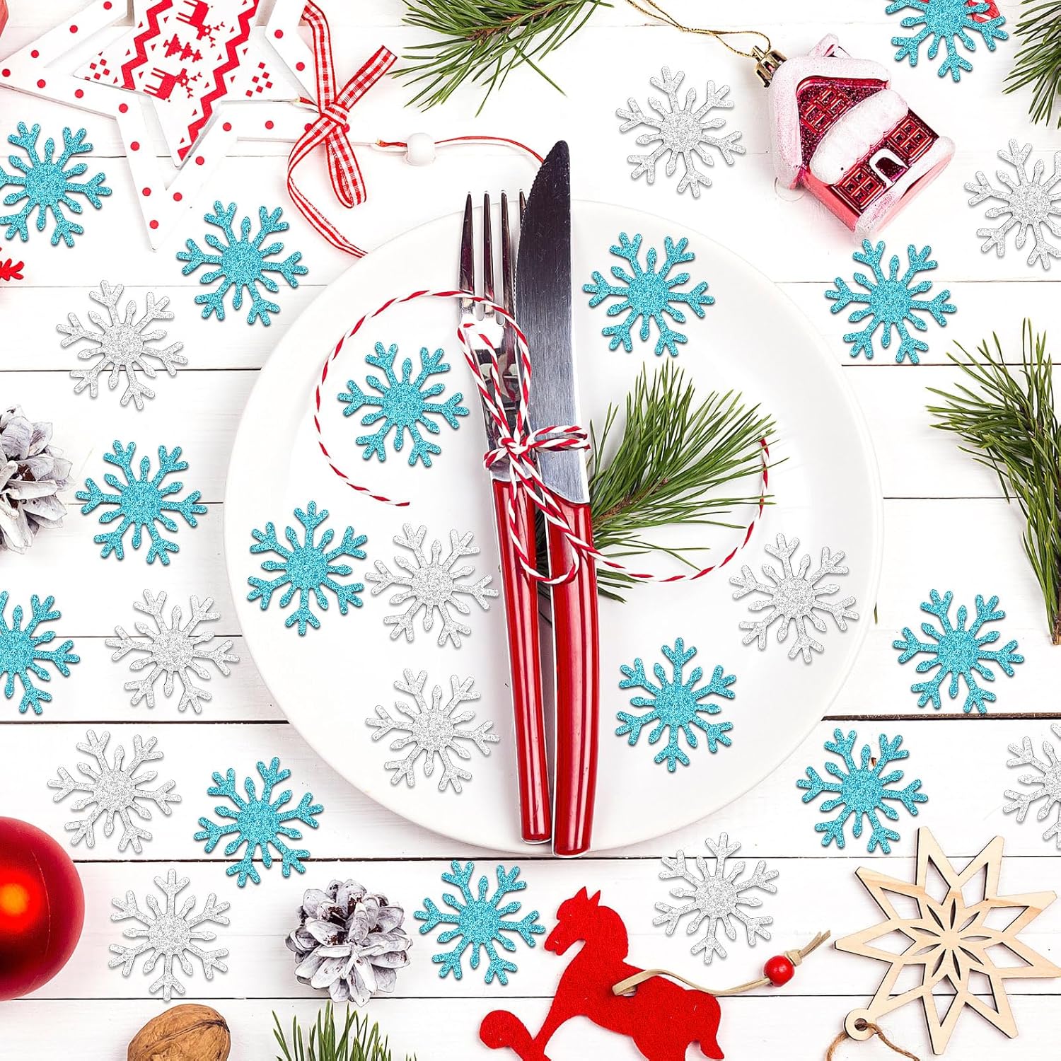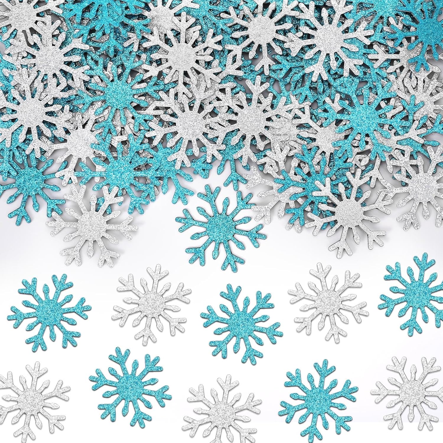 - Product Contents: Contains 100 pieces of blue and silver snowflake glitter confetti, each meticulously crafted and crafted to create a captivating sparkle. The snowflake decorations will add a touch of sparkle to your holiday celebrations, decorating tables and other accessories, creating a unique visual feast