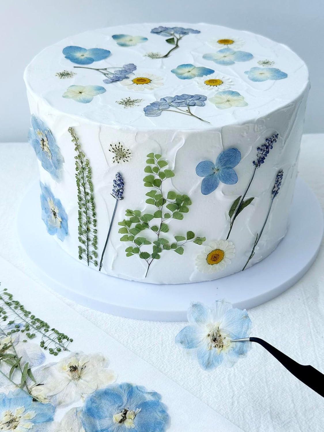 Real Dried Pressed Flowers Leaf Plant Herbarium for Crafts Resin Jewelry Making, Floral Cake Decorations-Fog Blue