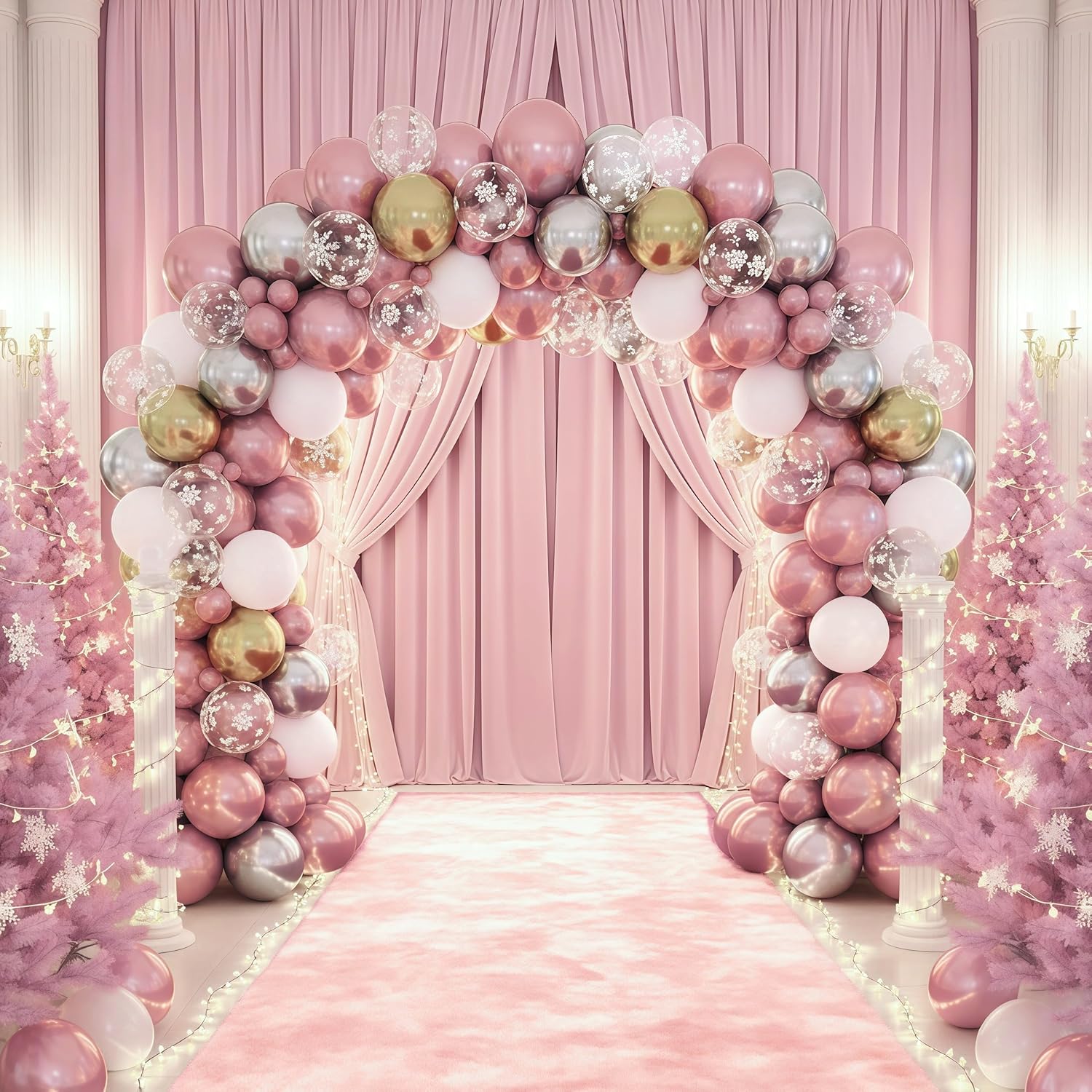 - Perfect for Winter Celebrations – Create stunning pink white gold balloon garlands, bouquets, or table centerpieces for Christmas, winter birthdays, New Year’s Eve, snow princess theme party decor and winter wonderland weddings.