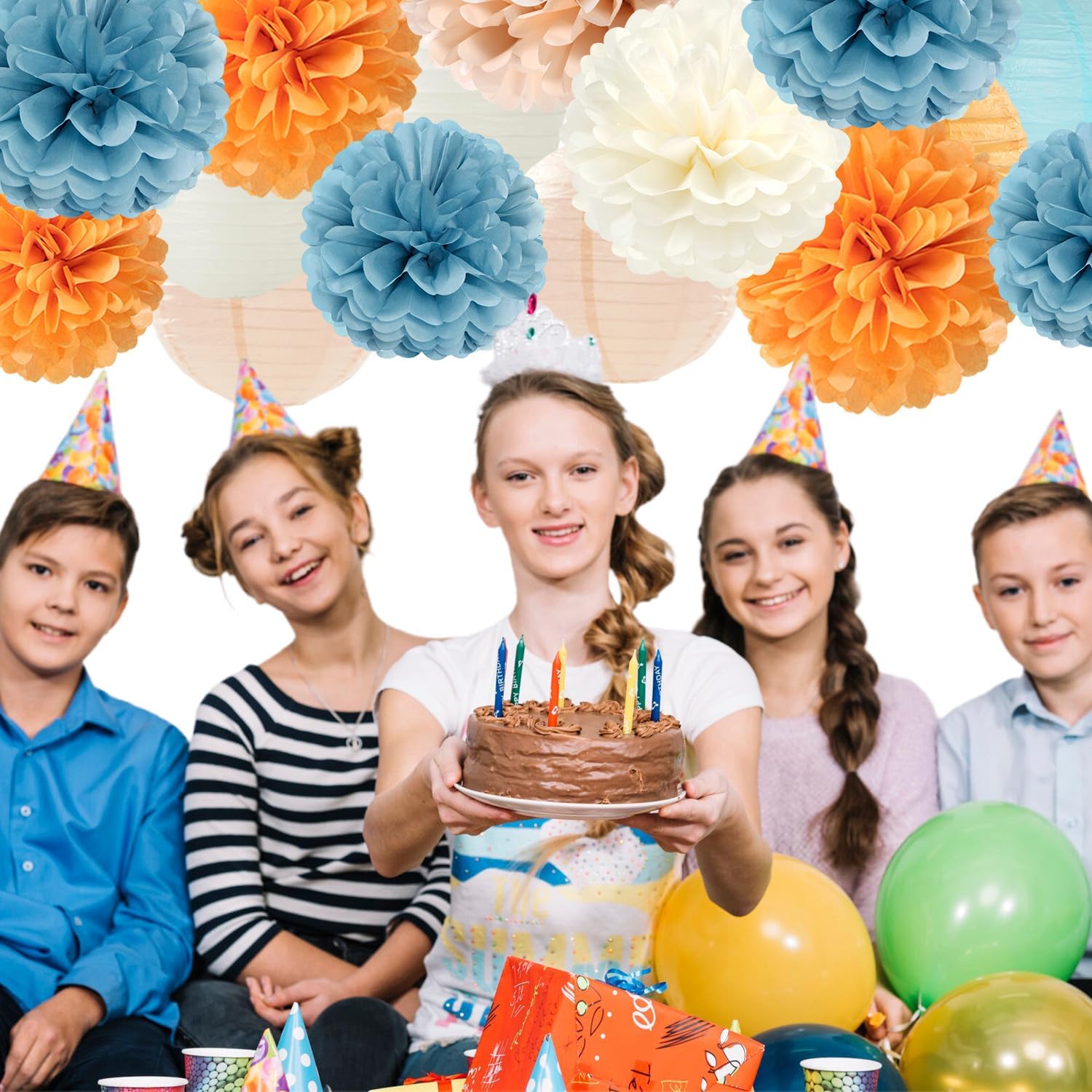 Dusty-Blue Orange Party-Decorations Paper-Flowers Lanterns - 15pc Boho Fall Peach Beige Tissue Pom Poms Streamers,Birthday Bachelorette Bridal Baby Shower Engagement Wedding Graduations Decor Panduola