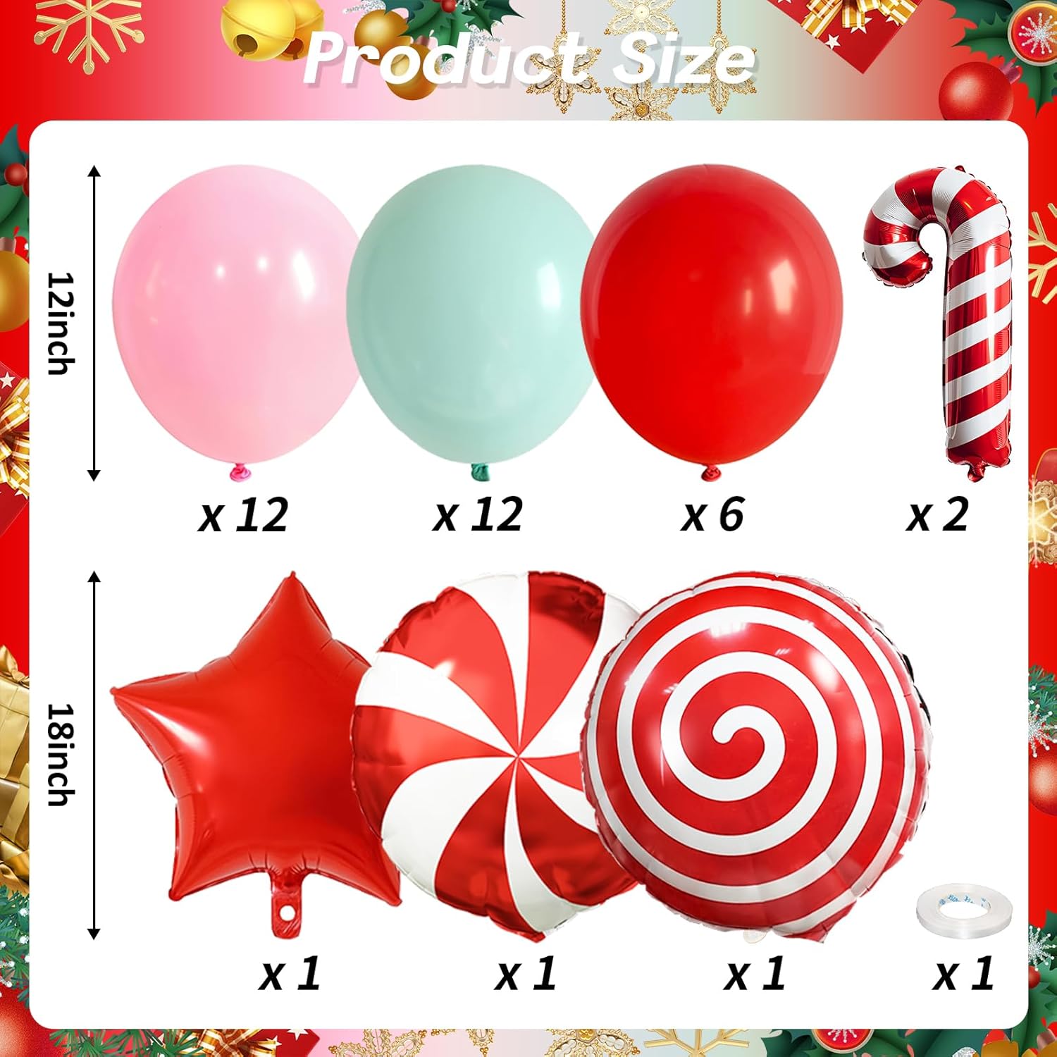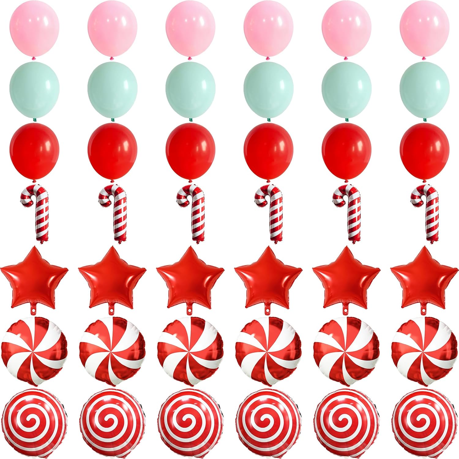 - Party Balloons Set: The light green and pink christmas balloons set have 35pcs 12inch helium balloons, include 12pcs pastel light pink balloons, 12pcs pastel green mint balloons, 6pcs red balloons, mini cane foil balloons *2, 18 inch foil balloons (star balloons *1, candy balloons *1, swirl / lollipop balloons *1), and comes with 1pc balloon ribbon.