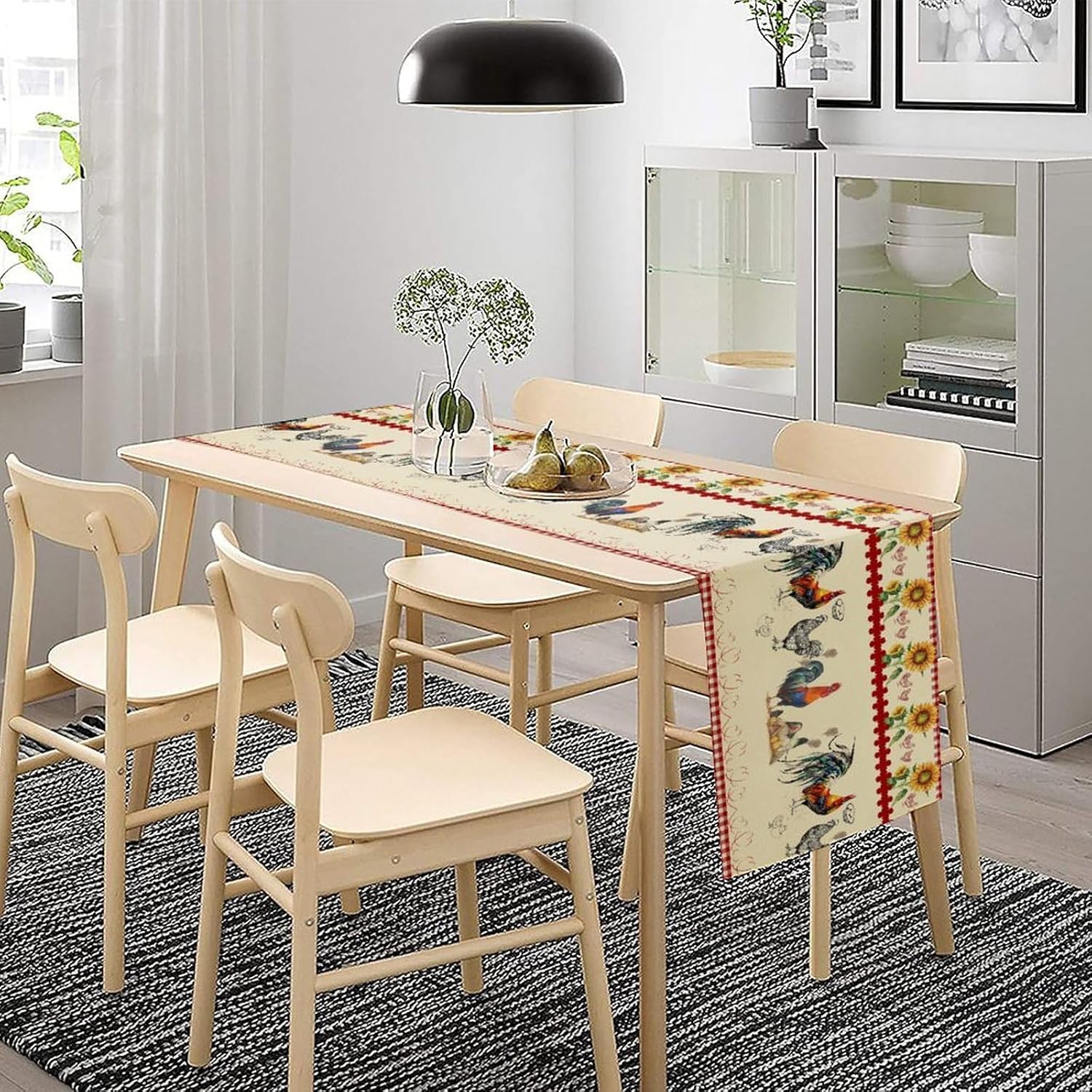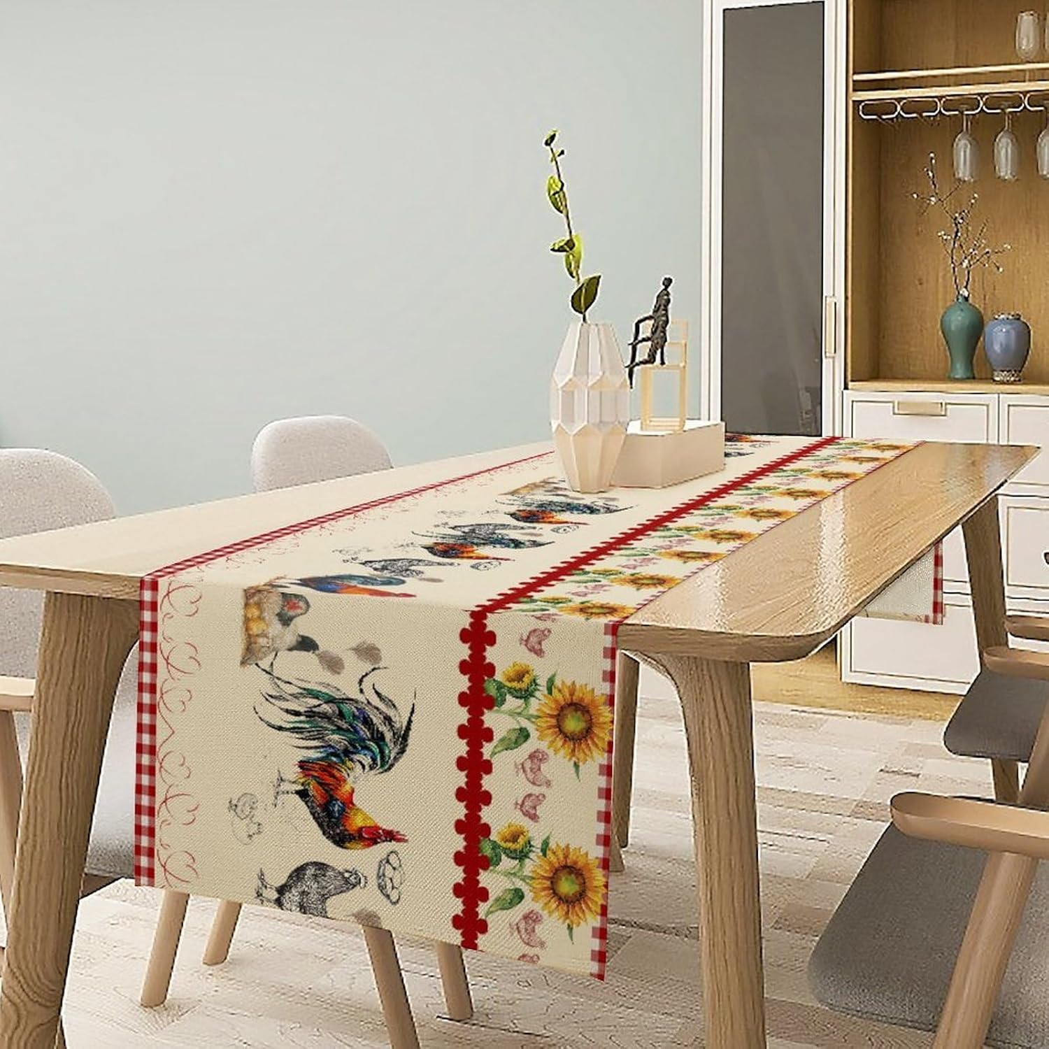 Rustic Rooster Table Runner,Vintage Country Farm Sunflower Chicken Red Plaid Print Tablecloth Burlap for Hotel Indoors Outdoor Dining Room Kitchen Home Decor,W13X L36 in