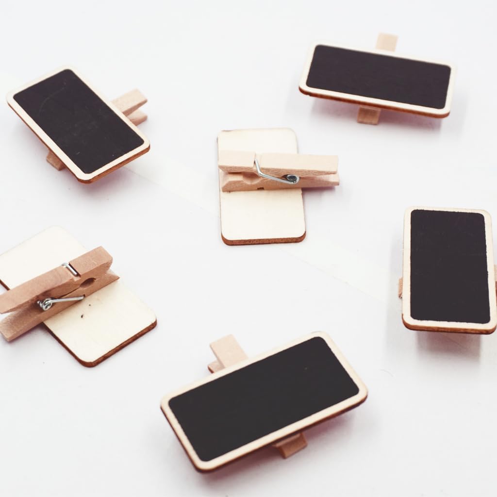 72 Count Chalkboard Signs Clips - Rectangle Wood Framed 2" x 1.5" Wooden Blackboard for Crafts, Home Decor, and Organization, Perfect for Special Occasions and Events Decoration