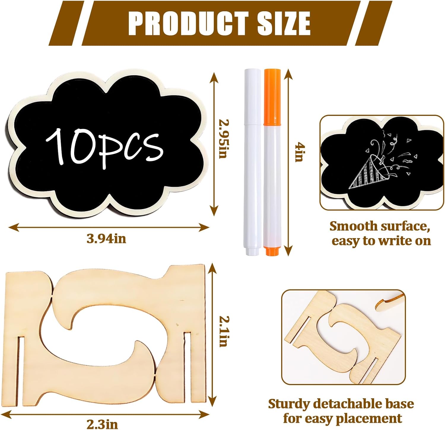 10PCS Mini Chalkboard Signs, Framed Small Chalk Board Food Labels with Easel Stand, Reusable Writable Blackboard with 2 Chalks, Wood Place Cards for Weddings, Birthday Parties, Buffet (Cloud)