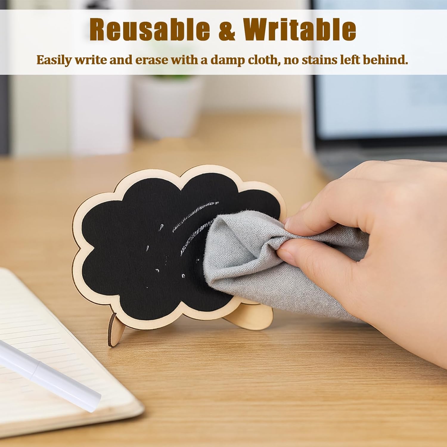 - Reusable Writable Chalkboard Tags: Effortlessly write and erase on these mini chalkboard signs with a damp cloth, leaving no stains or residue behind. Perfect for repeated use